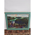 A framed chalk picture of a multicoloured desert landscape i...