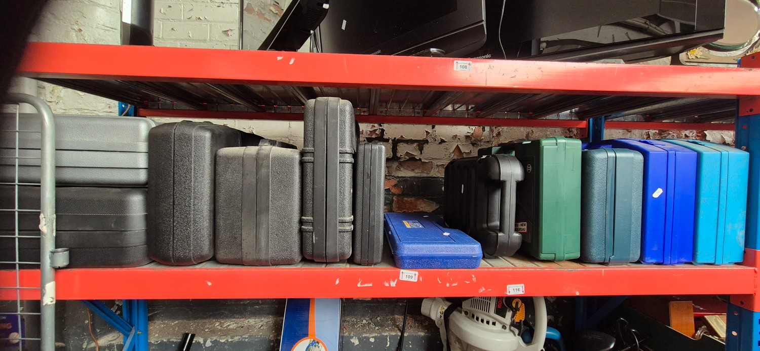Cased tools to include Black & Decker power drill, file set, 15pc auger drill bit set, cordless power drill with battery and charger, JCB planer with chisel, JCB 18volt Sitemaster, Polar professional pipe freezing kit, Bosch jig saw, Black & Decker sander, pipe freezing kit, Rotozip spiral saw, Titan electric concrete breaker