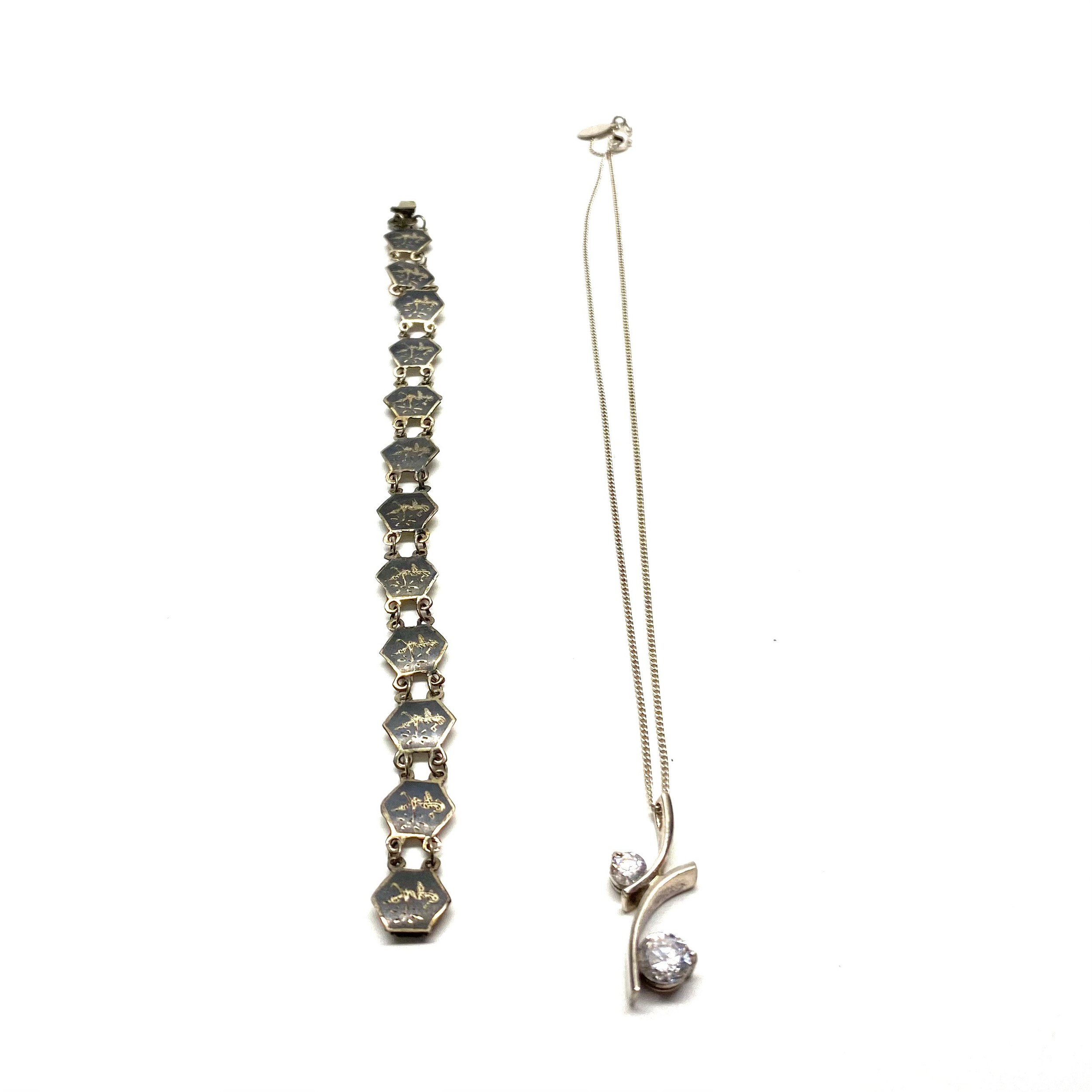 Silver NEXT pendant and chain and a Thai bracelet.