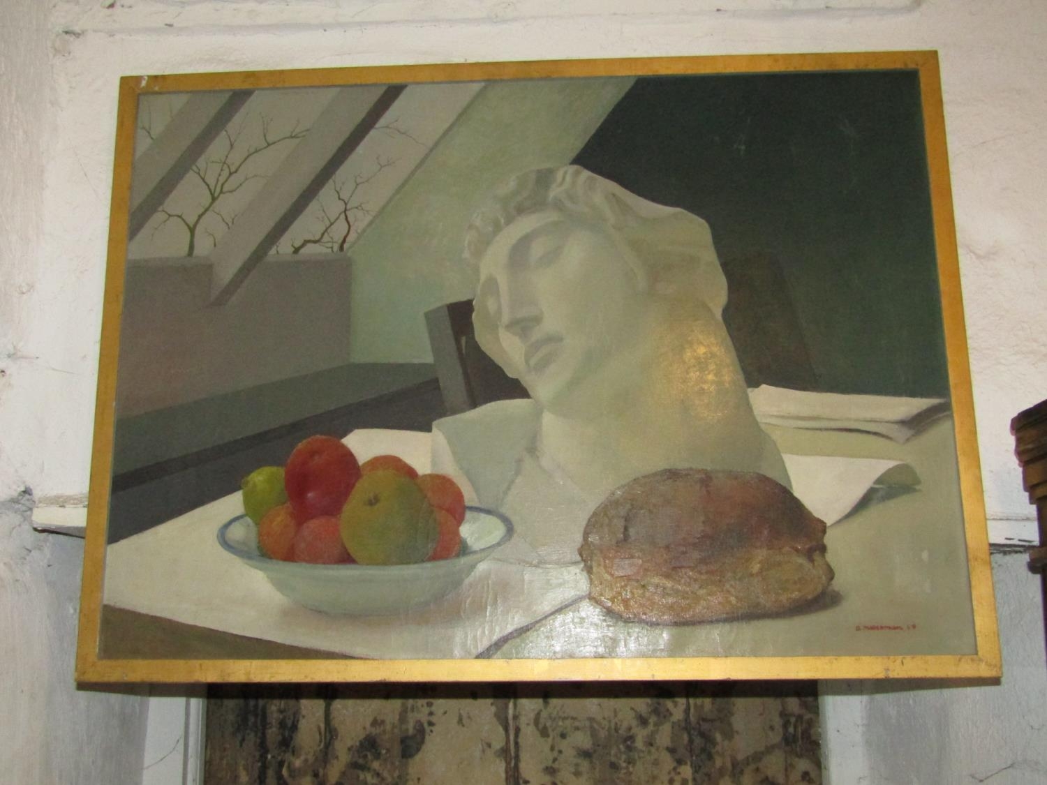Victorian School Classical Bust with Still Life Studio Window Beyond Oil on Canvas Approximately 22 Inches High x 30 Inches Wide Signed Lower Right