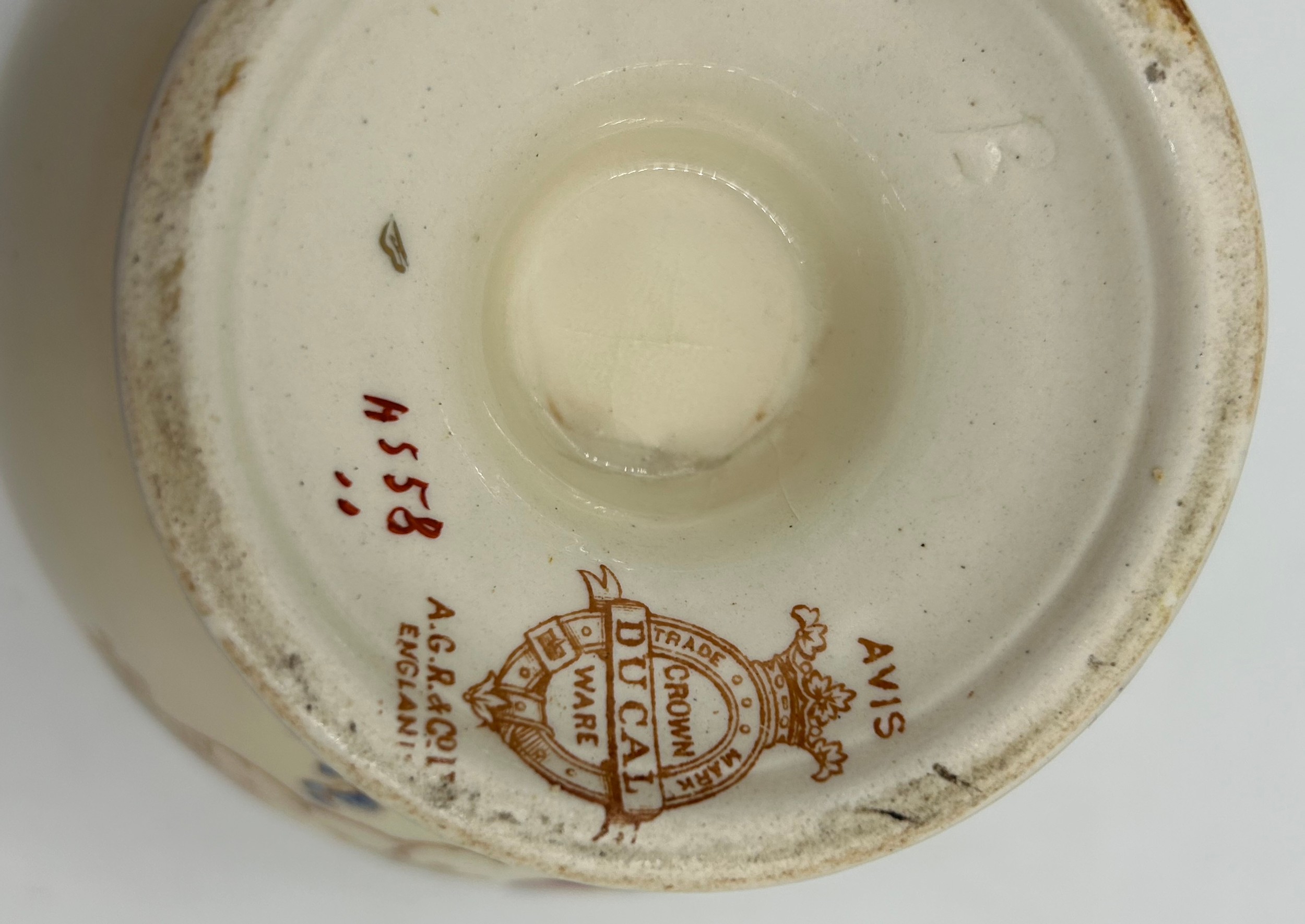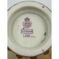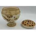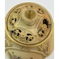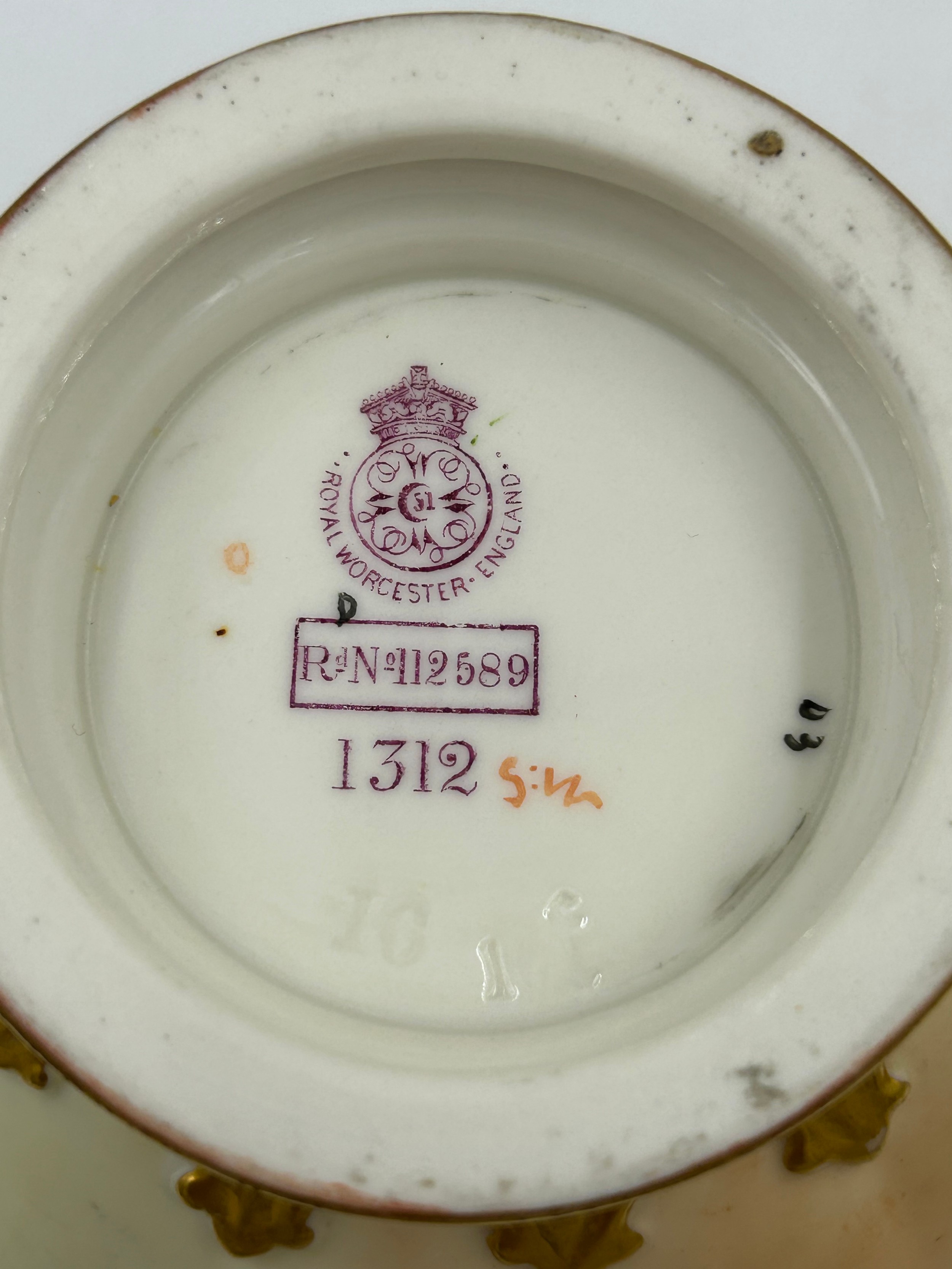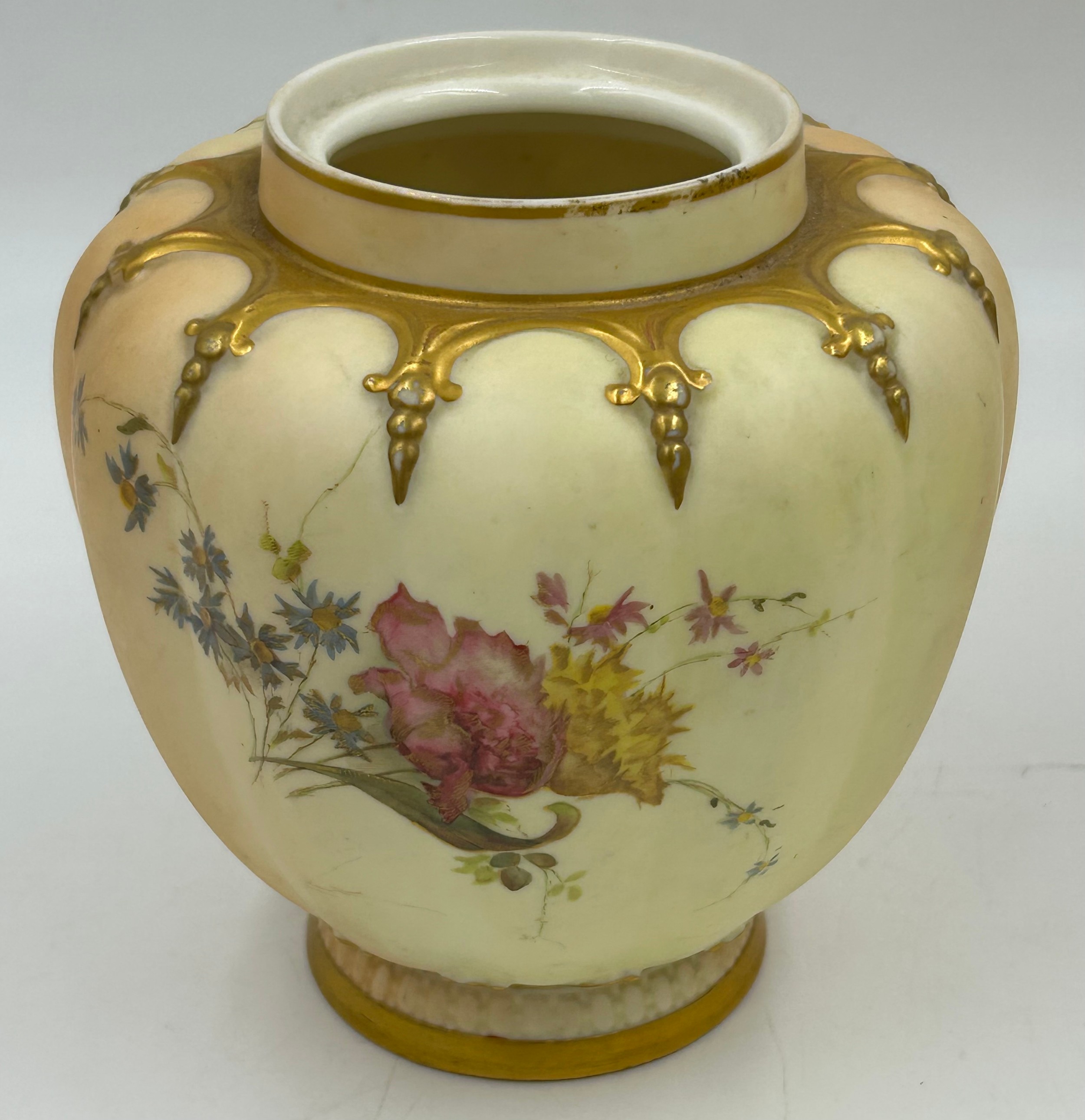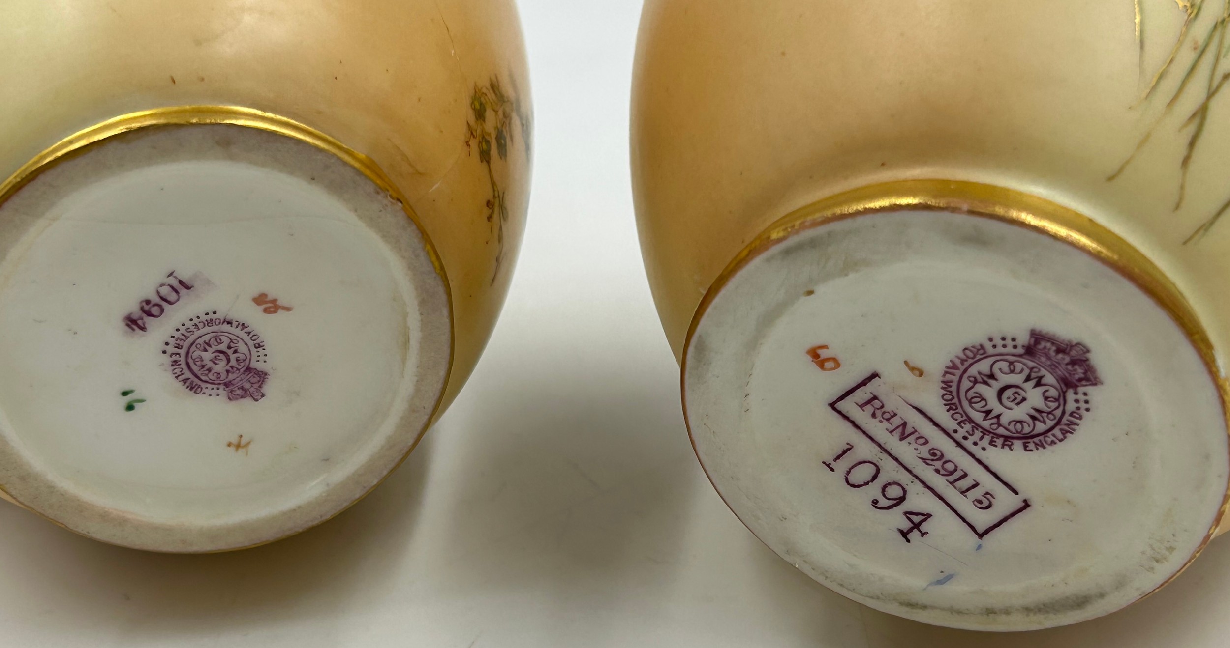 Royal Worcester blush ivory comprising: pot pourri shape 1312 No.112589 lacking lids, 2 x jugs, largest 13cm h, shape 1094, pot pourri twin handled shape 1326 No.114300 with two lids, a pot pourri 175 with fixed glued lid a/f together with a Crown ducal Ware Avis pedestal pot pourri bowl with lid.