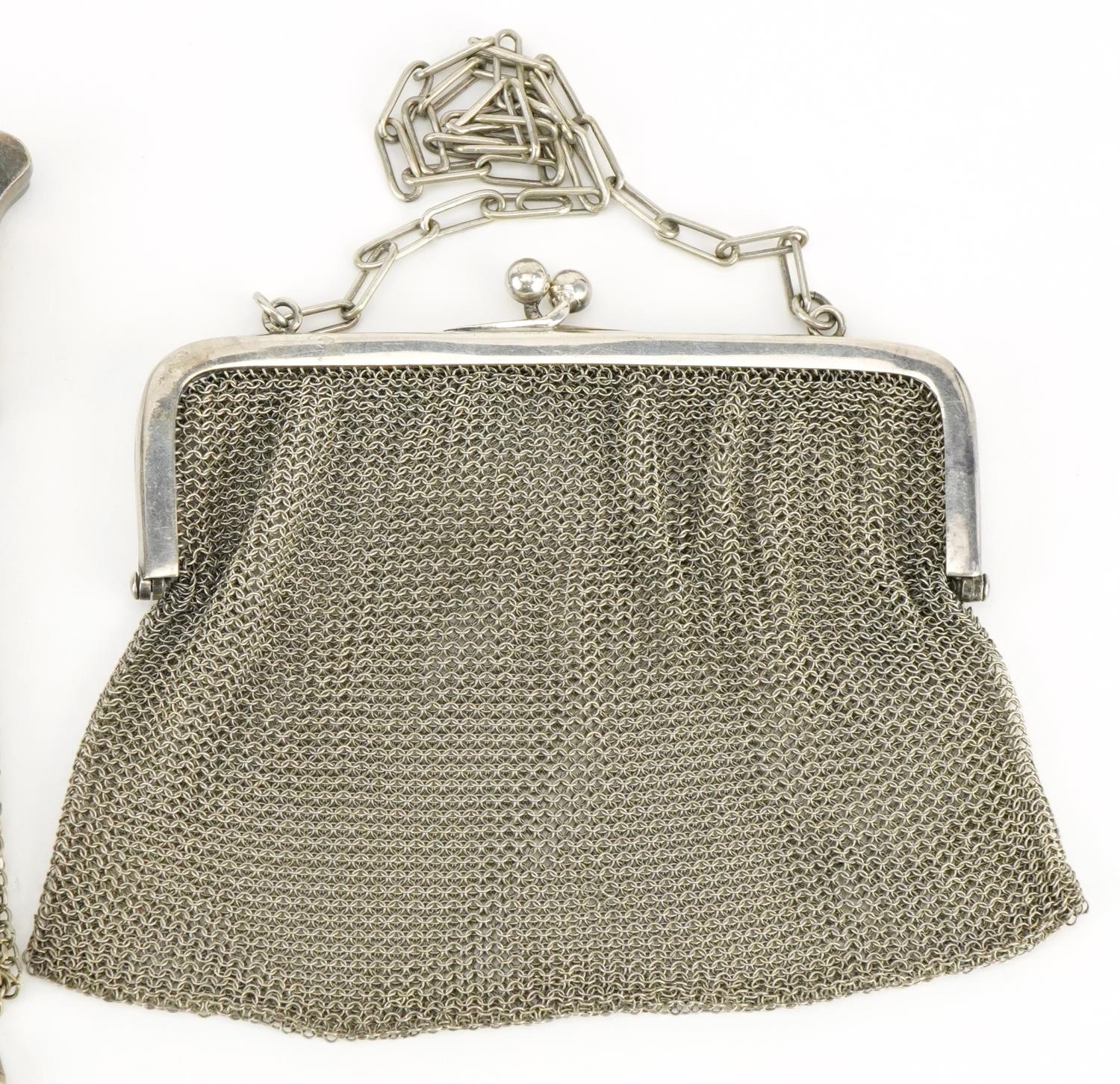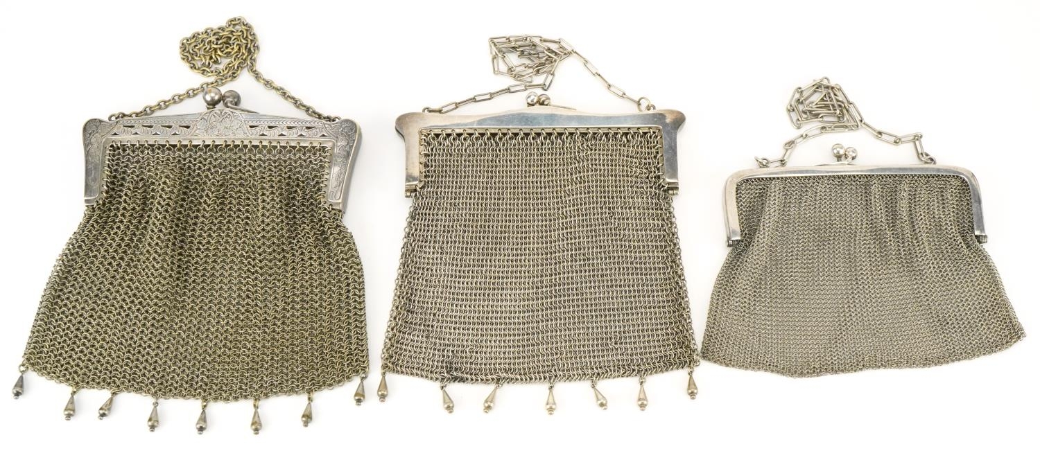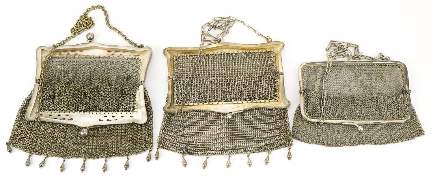 Three 1920s/30s silver plated chain mail purses, the largest 15cm x 13cm.