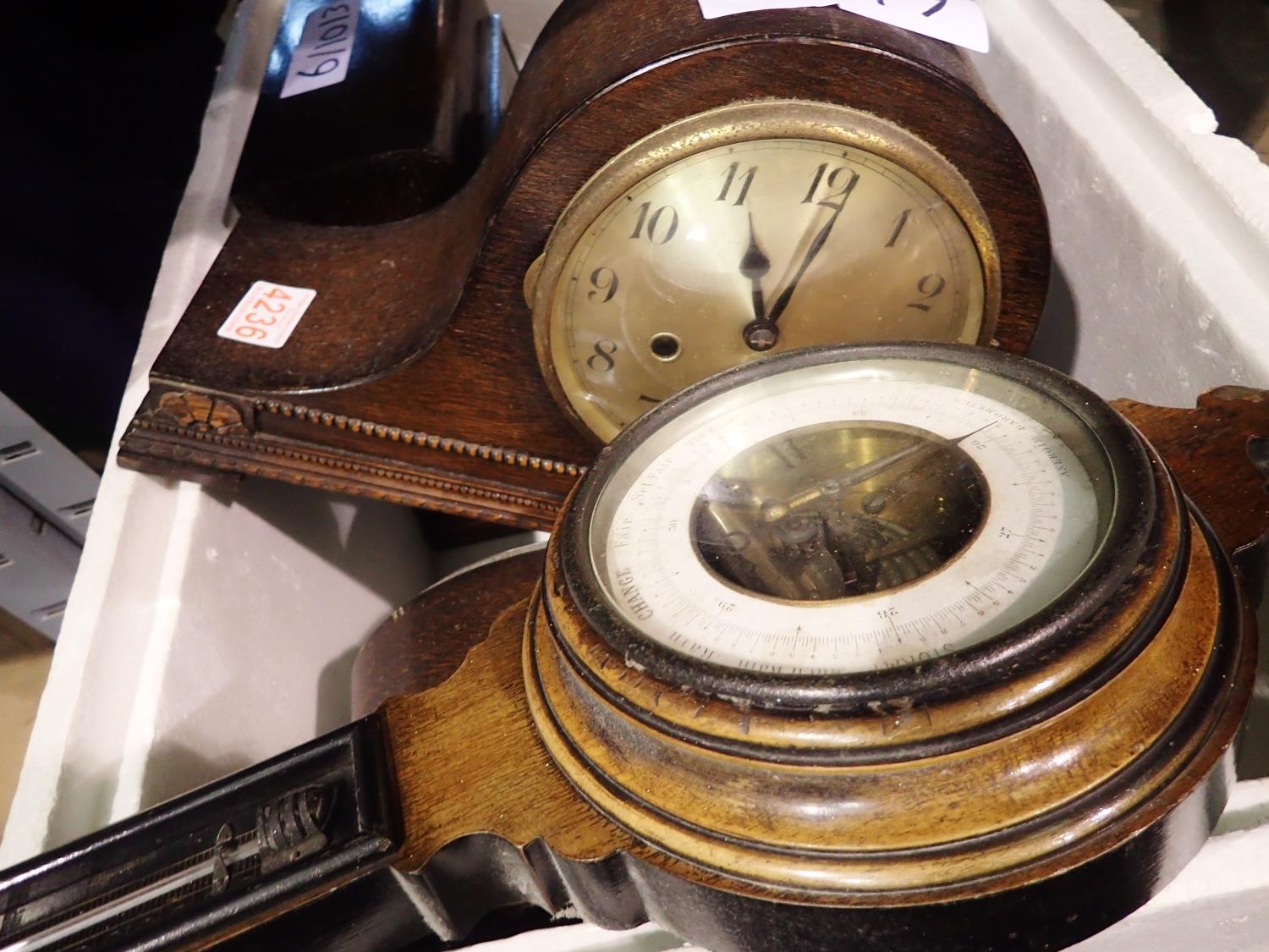 Five mantle clocks and a barometer. Not available for in-house P&P