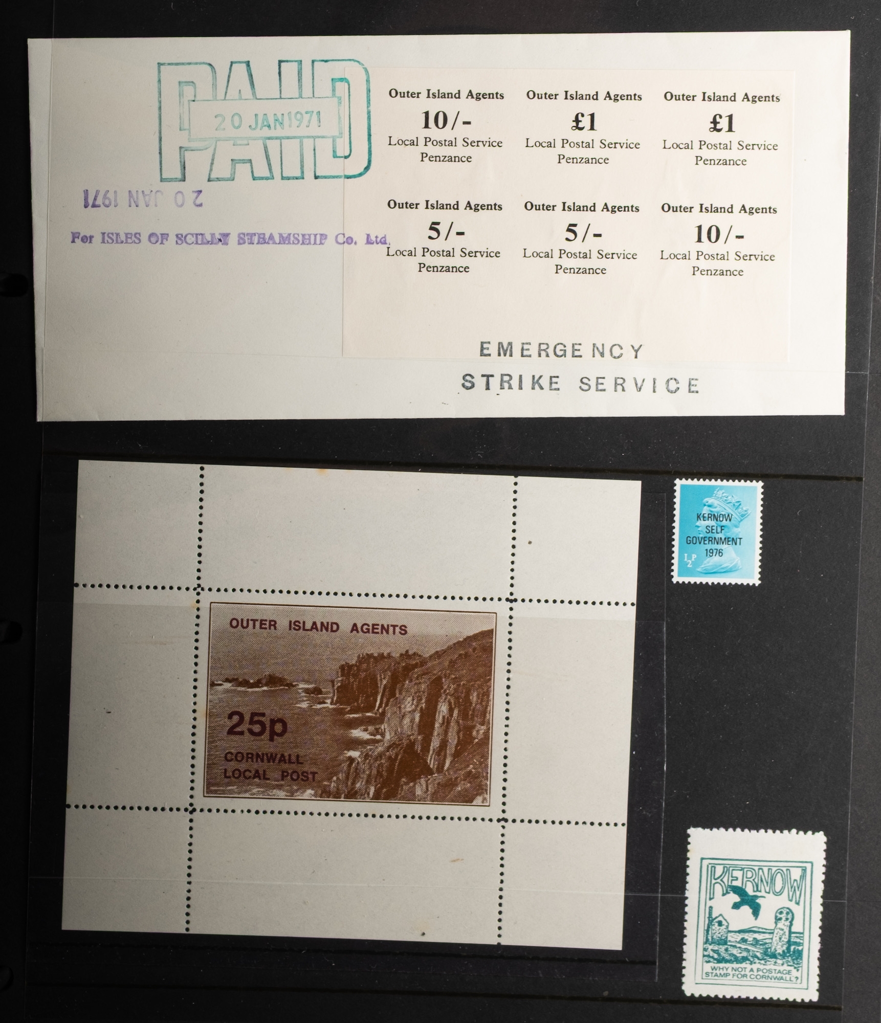 Cinderella. A good collection of Cinderella type material in twelve volumes including Bardsey, Lundy, Strike Mail, Herm, and much more, along with some stock cards and loose pages. Viewing recommended.