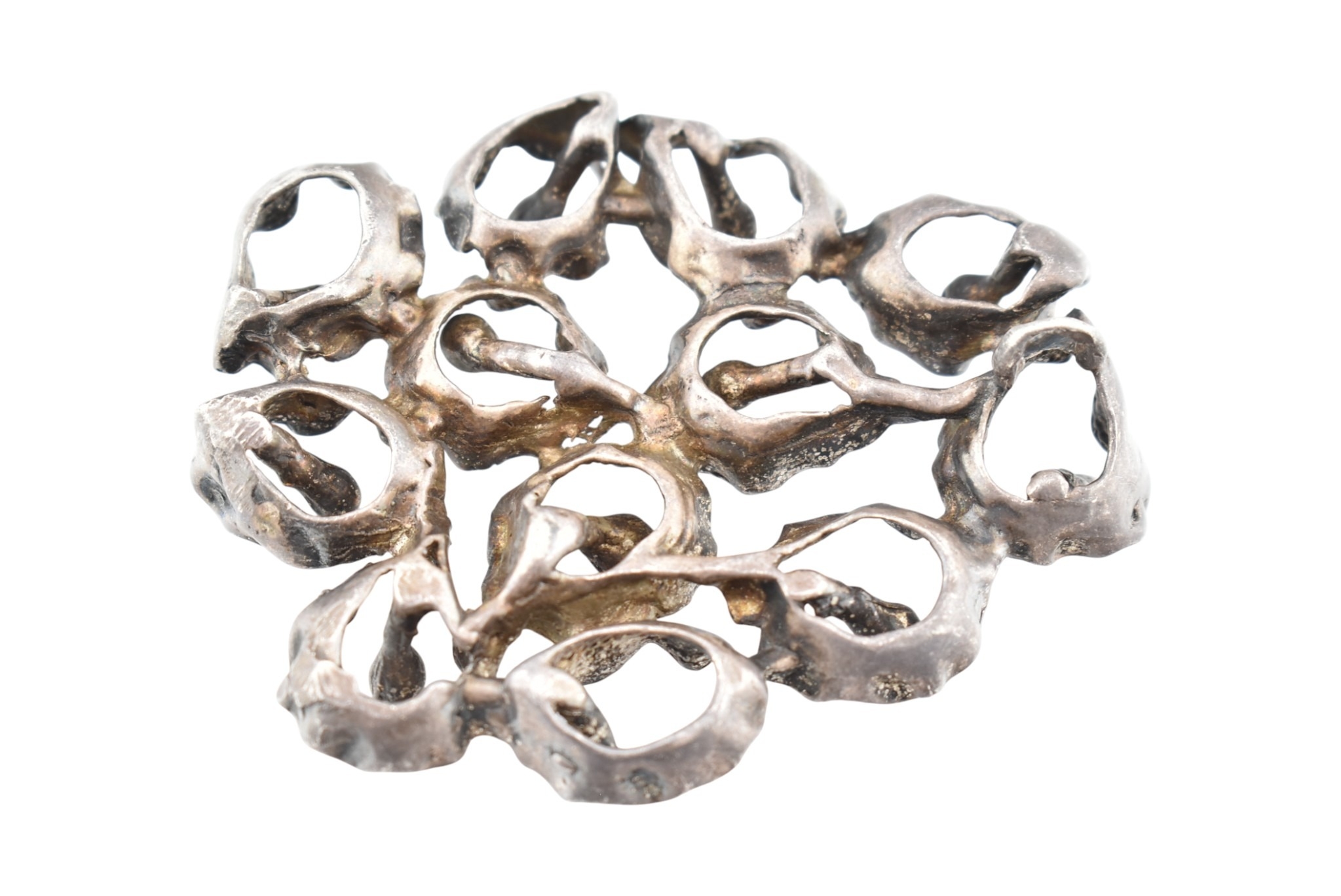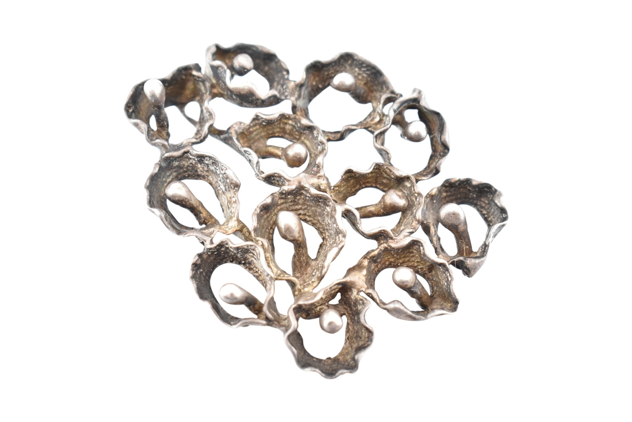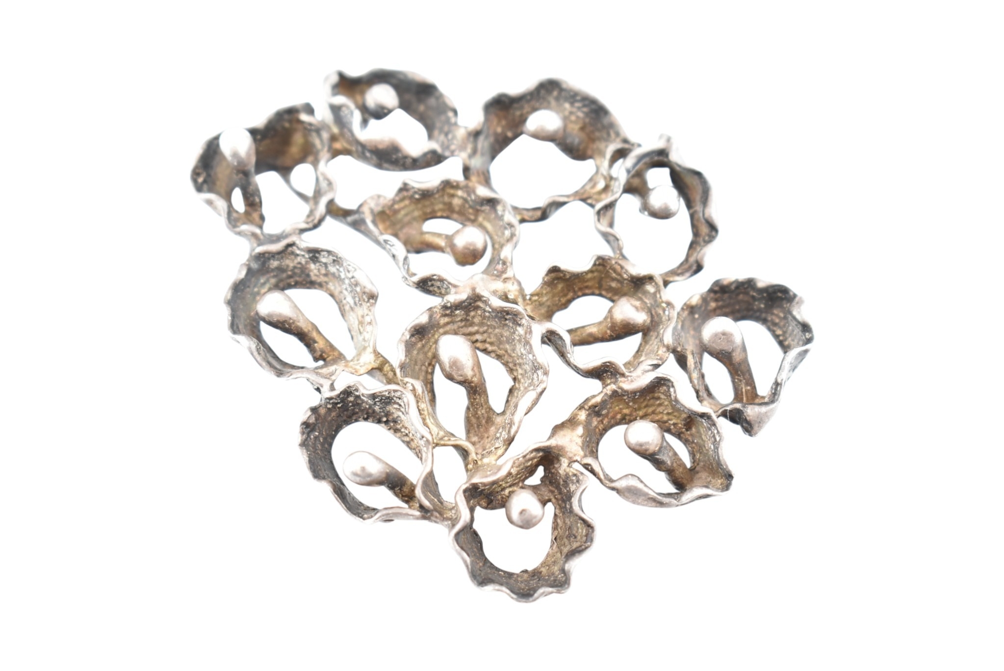 A large abstract flower cluster pendant. Marks to bail illegible. Weight 37.8g. Measures 6.5cm