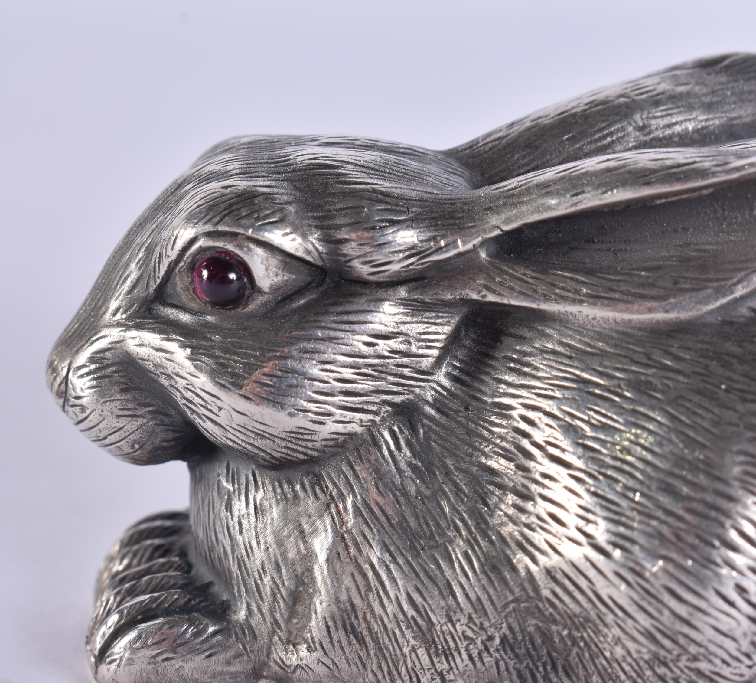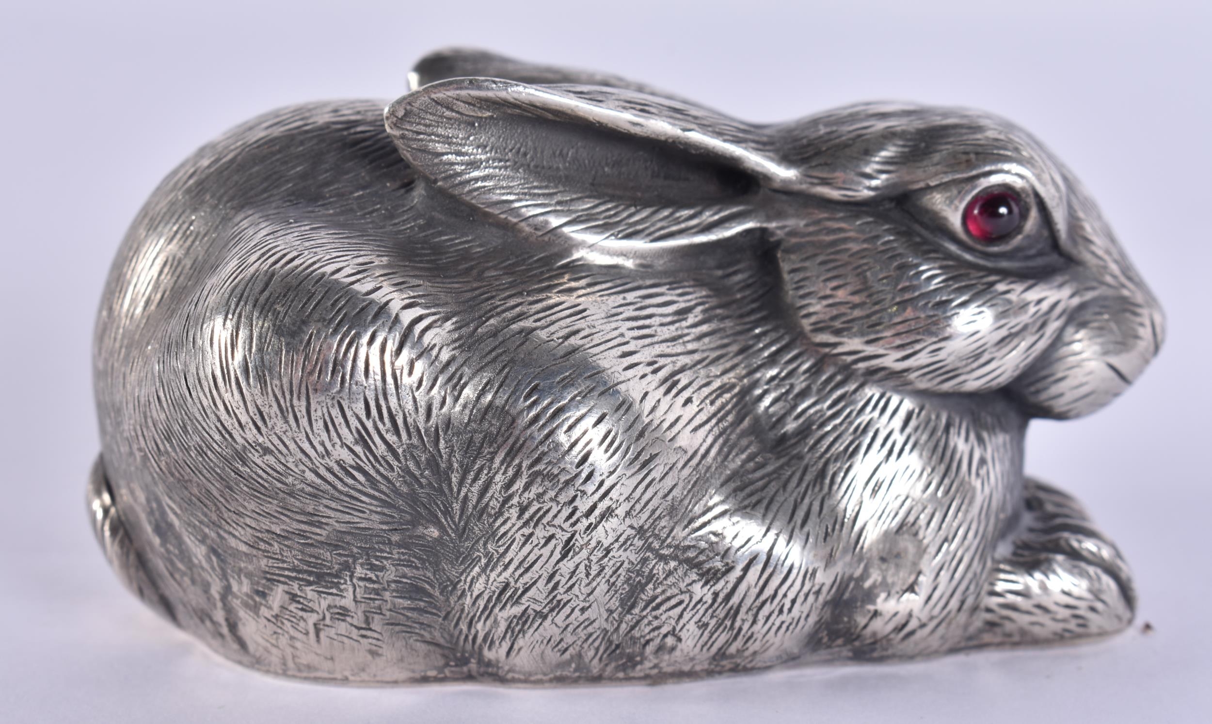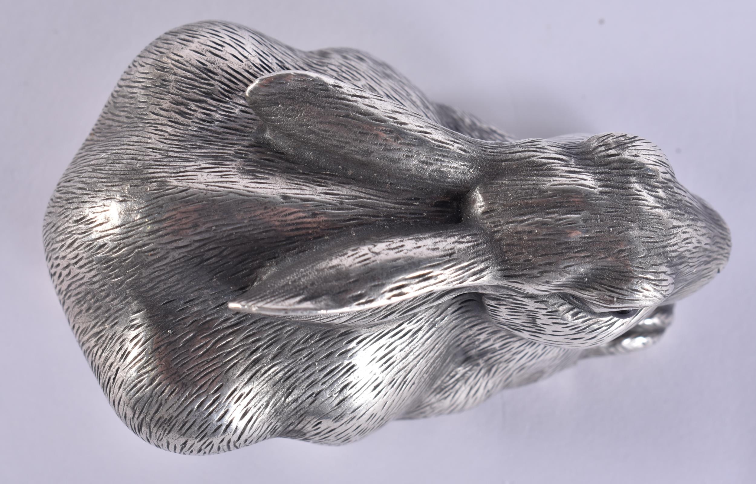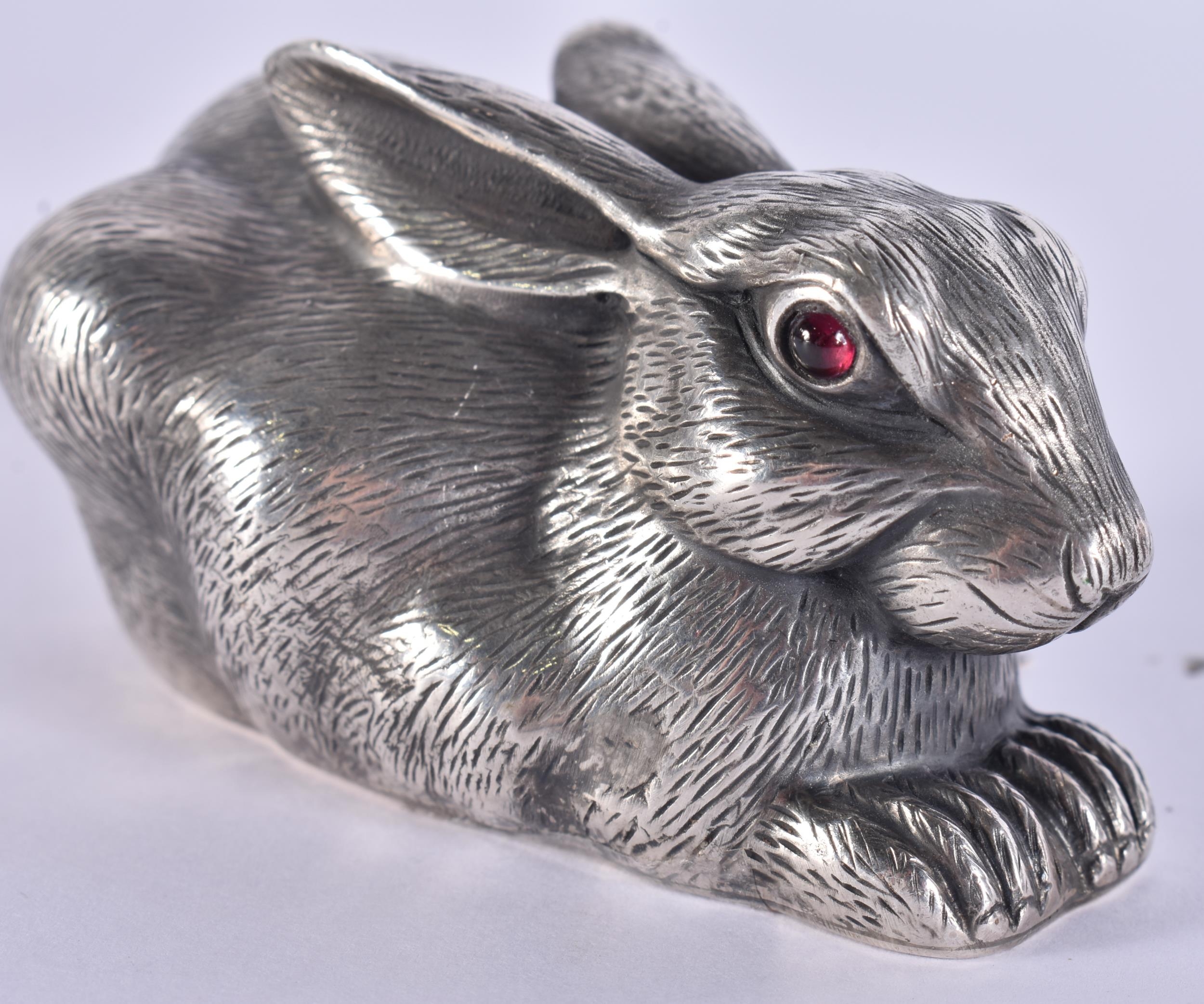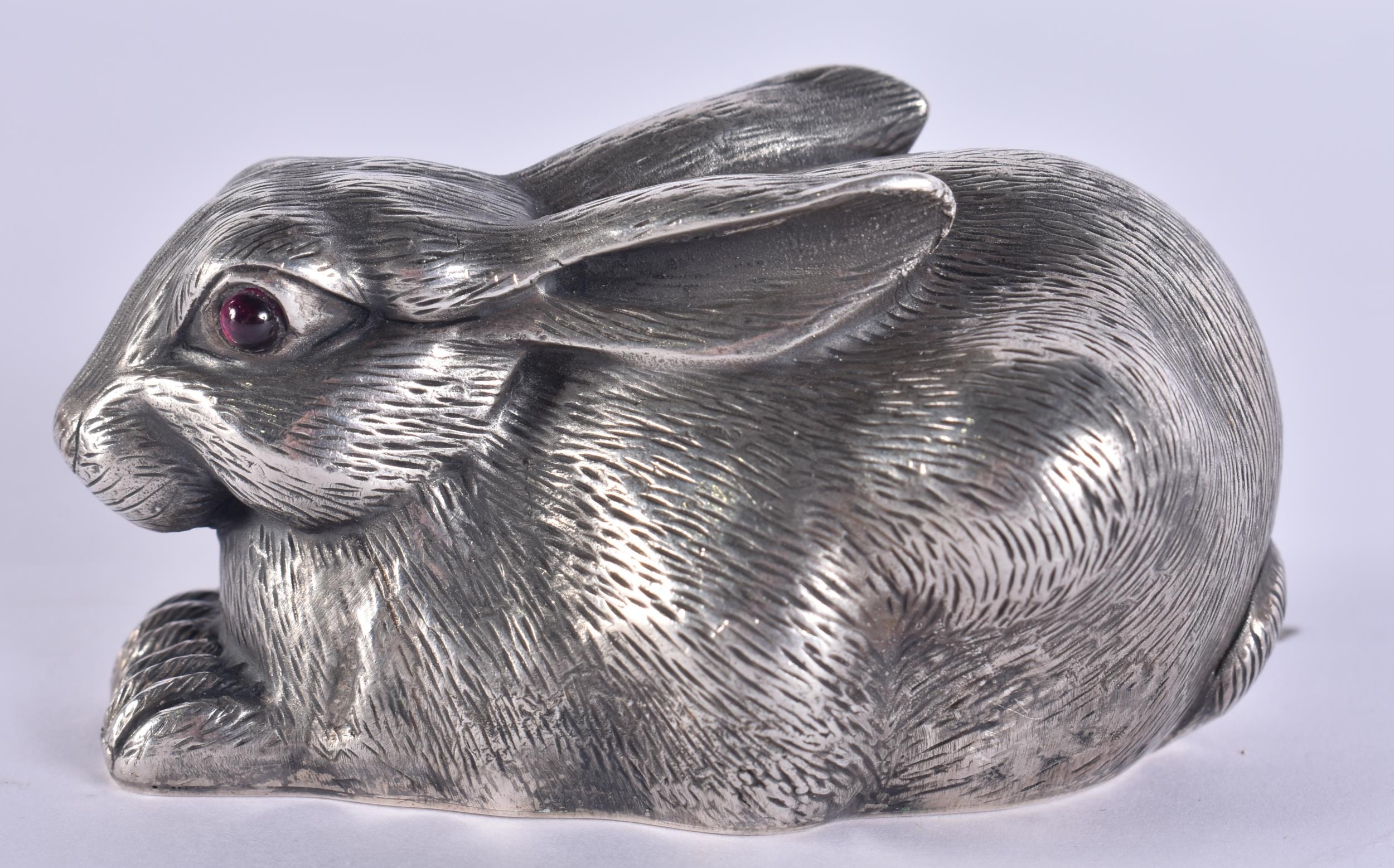 A CONTINENTAL SILVER FIGURE OF A HARE. 86 grams. 7 cm wide.