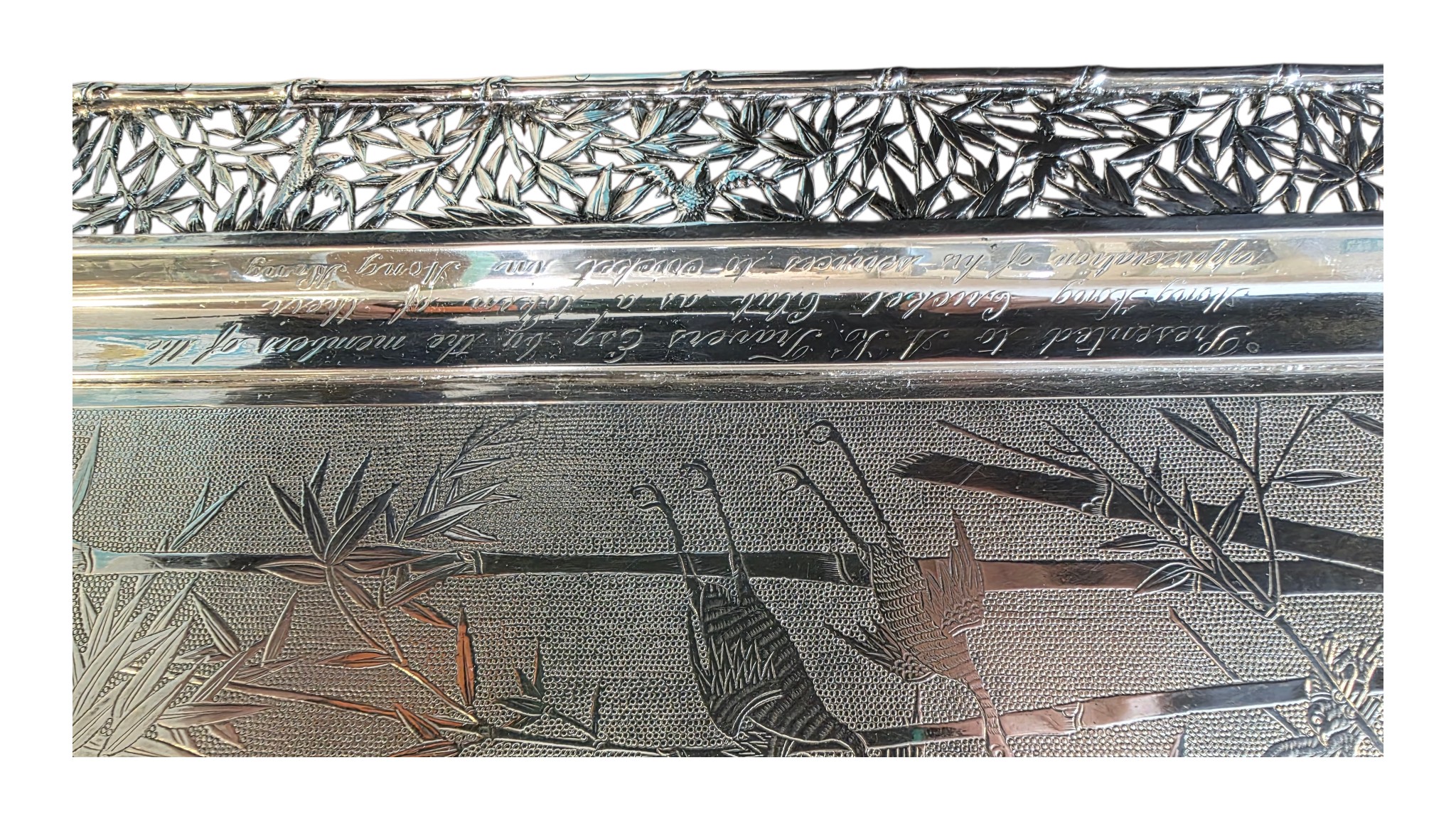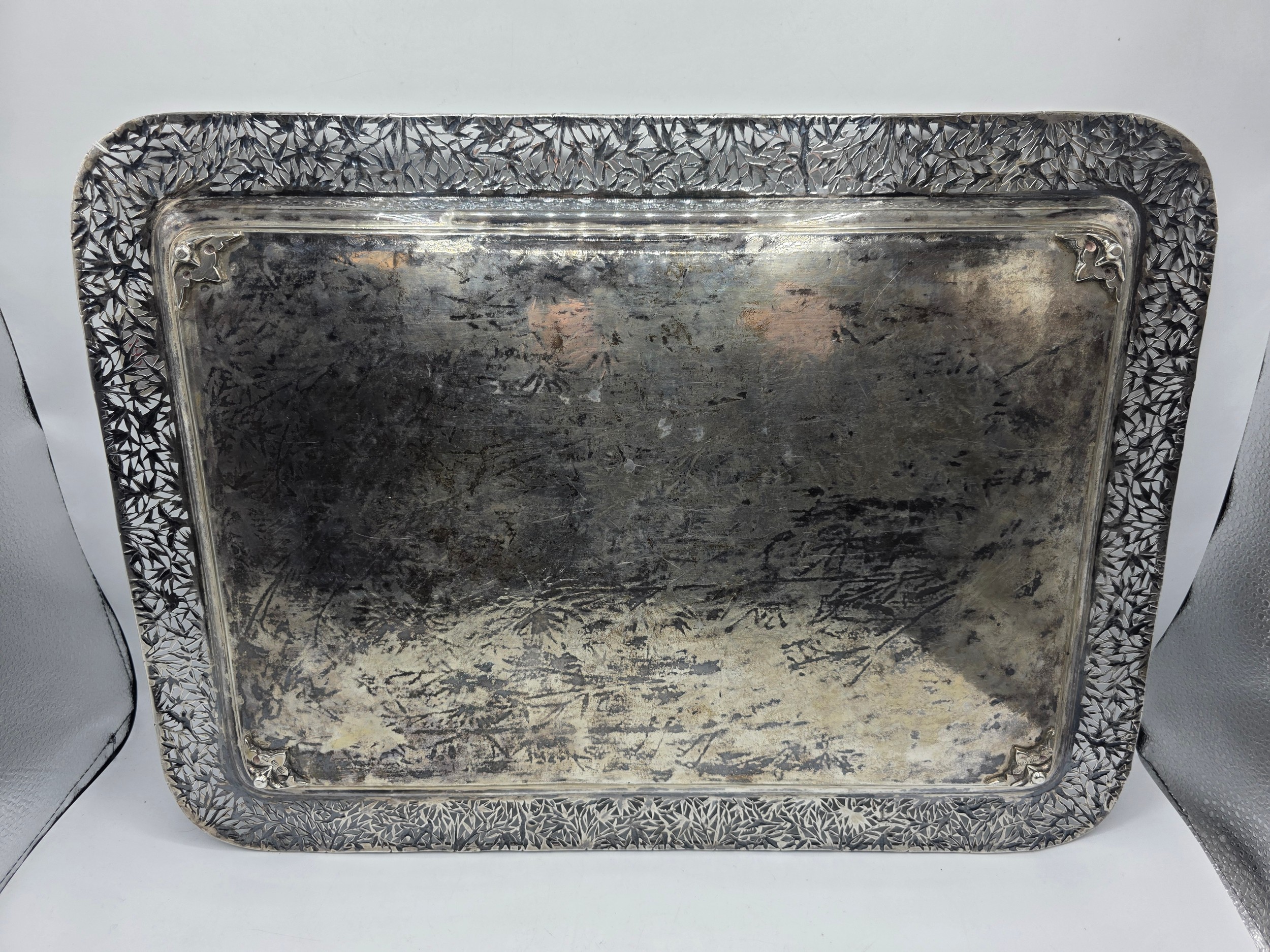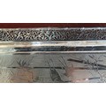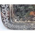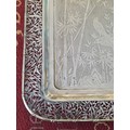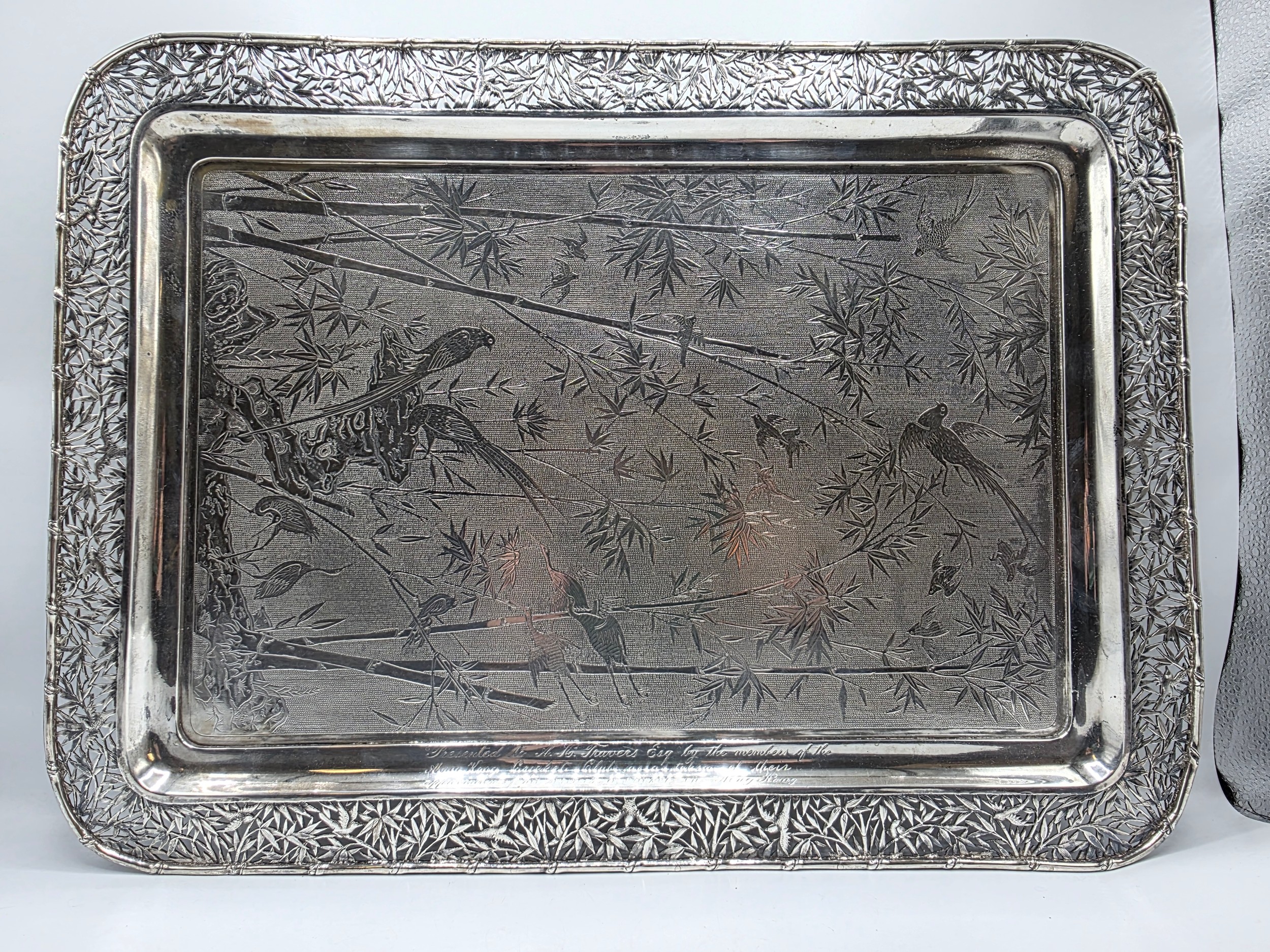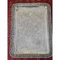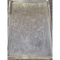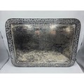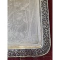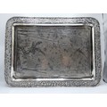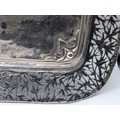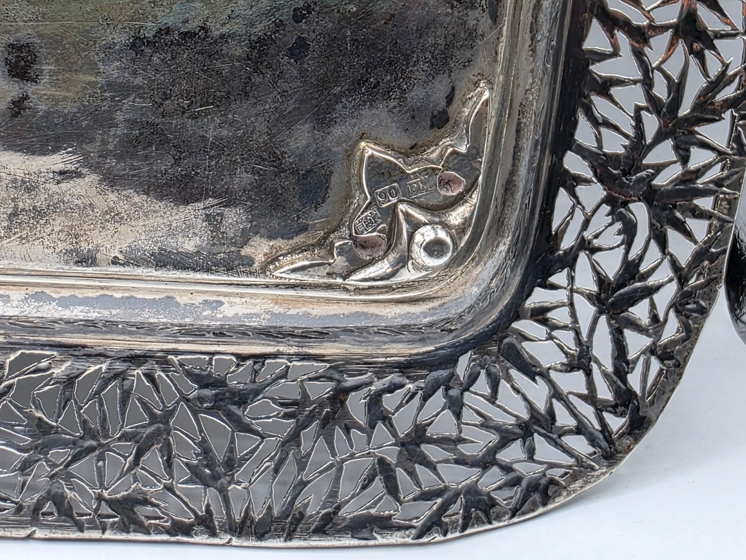 A Hong Kong Chinese silver oblong tray with pierced floral edge and chased flora and fauna decoration 50 cm x 36.5 cm, marked to base HM 90 & Chinese Character mark. 2302 g