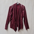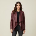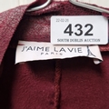 A J'Aime La Vie Paris burgundy leather jacket, cut with a waterfall open front, long sleeves, and zip detailing at the hips; fully lined. Please note, the image of the modelled item was created by a new imaging/ staging software called showiton.ai. Upload a simple image of a piece of jewellery and the software stages it on a model for you. Paste the URL (showiton.ai) into your browser and try it for free. It’s a very simple, user-friendly platform.
