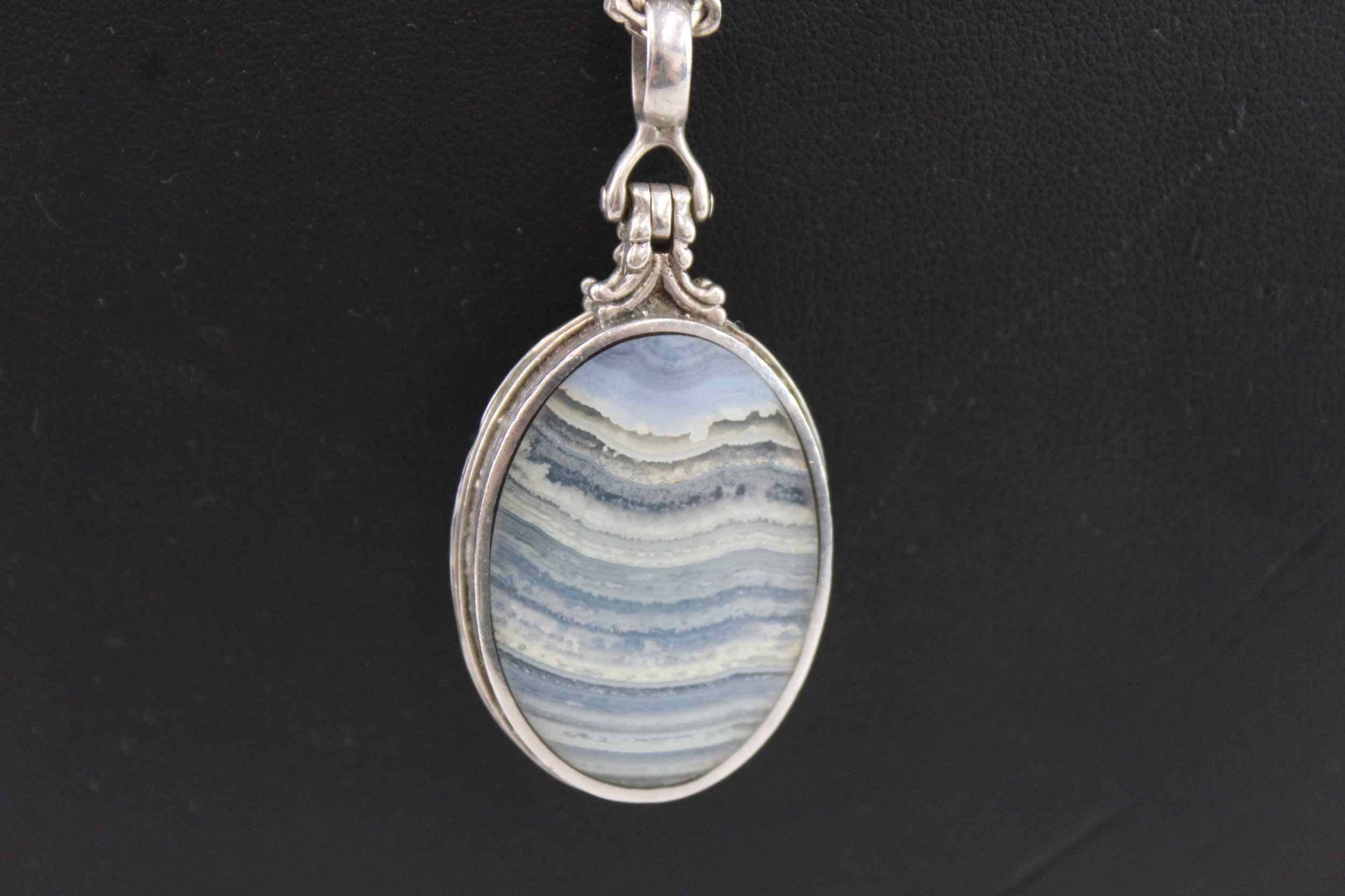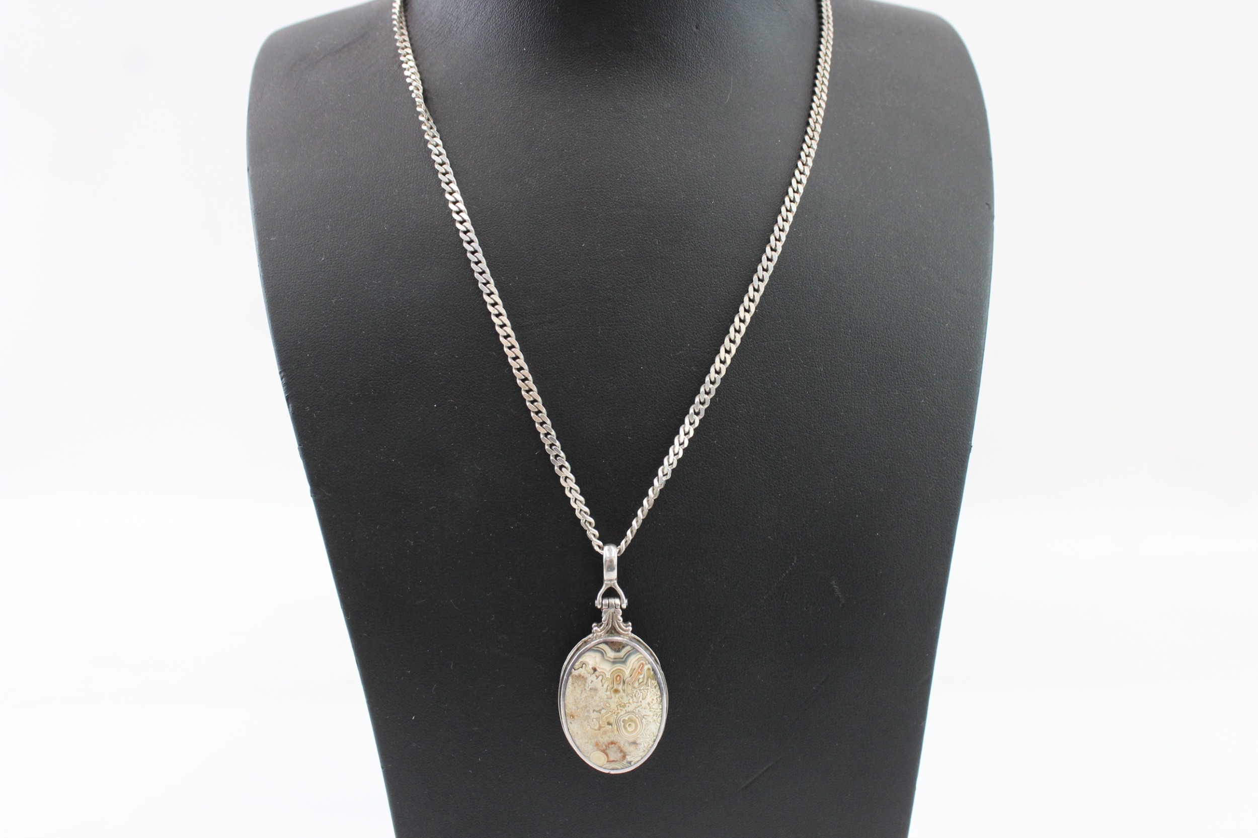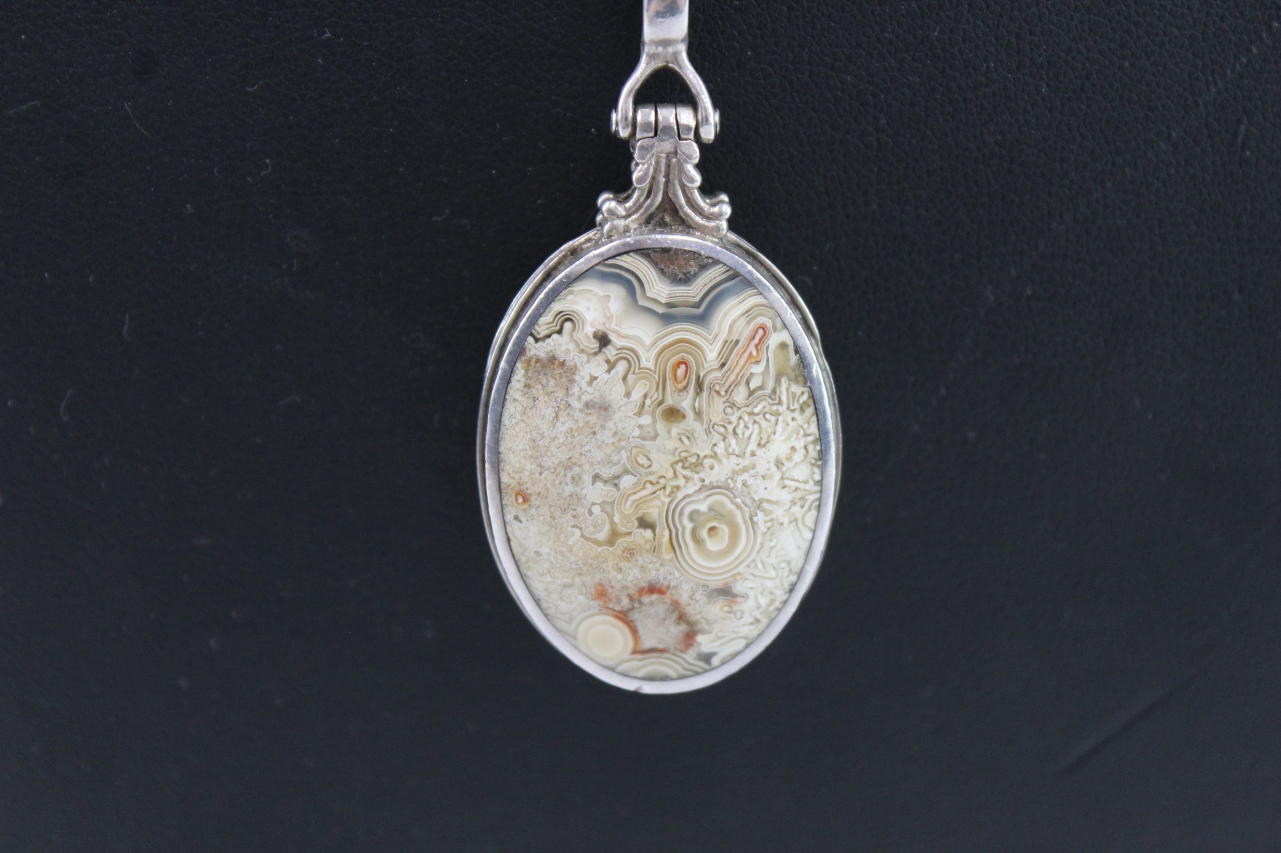 Sterling Silver Double Sided Gemstone Locket Necklace w/ Agate, Jasper 29g