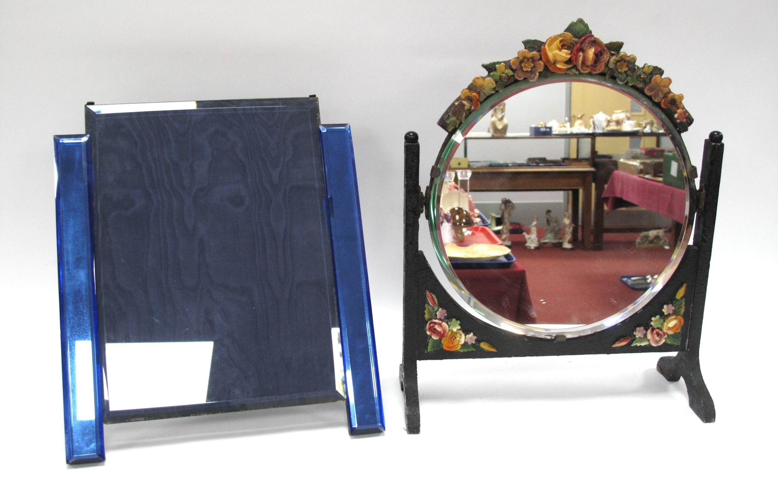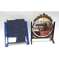 Art Deco Freestanding Photograph Frame, with blue glass side strips and ebonised back, 28.56cm wide. A barbola mirror (2).