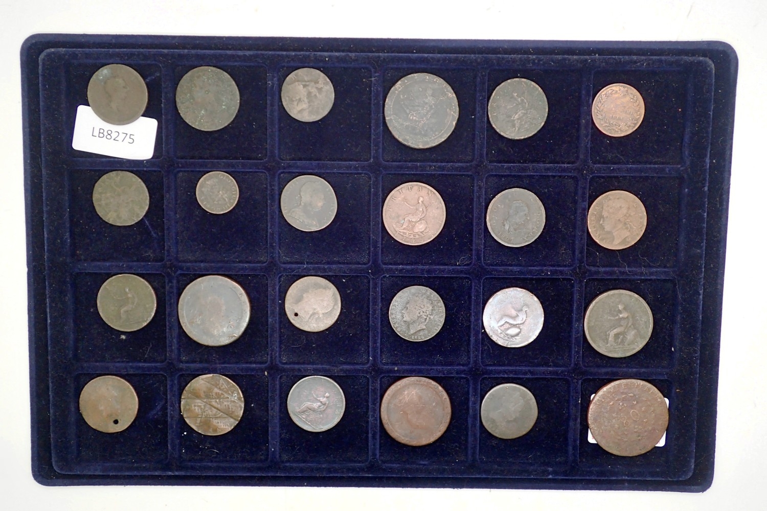 Twenty four early milled coins mostly George III. UK P&P Group 1 (£18+VAT for the first lot and £2+VAT for subsequent lots)