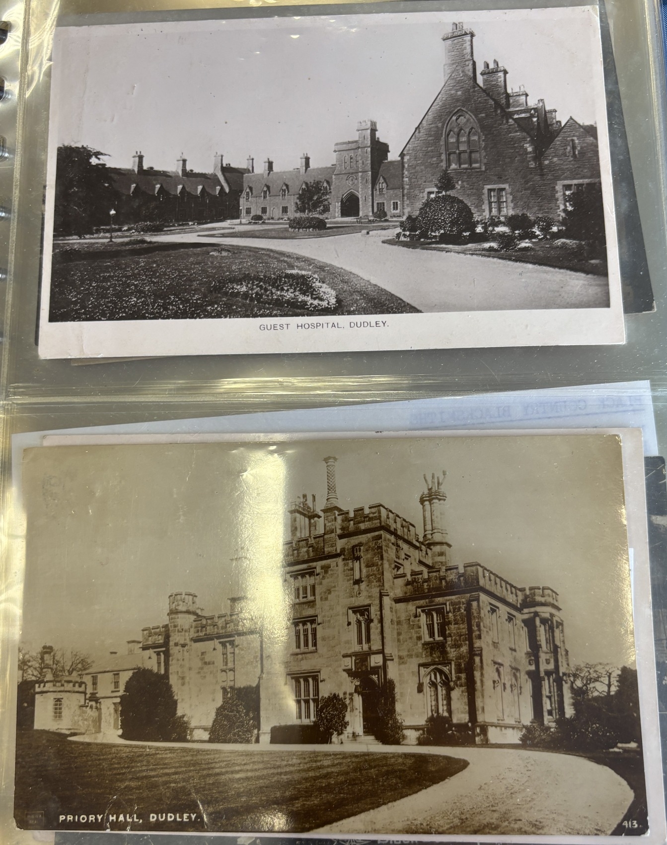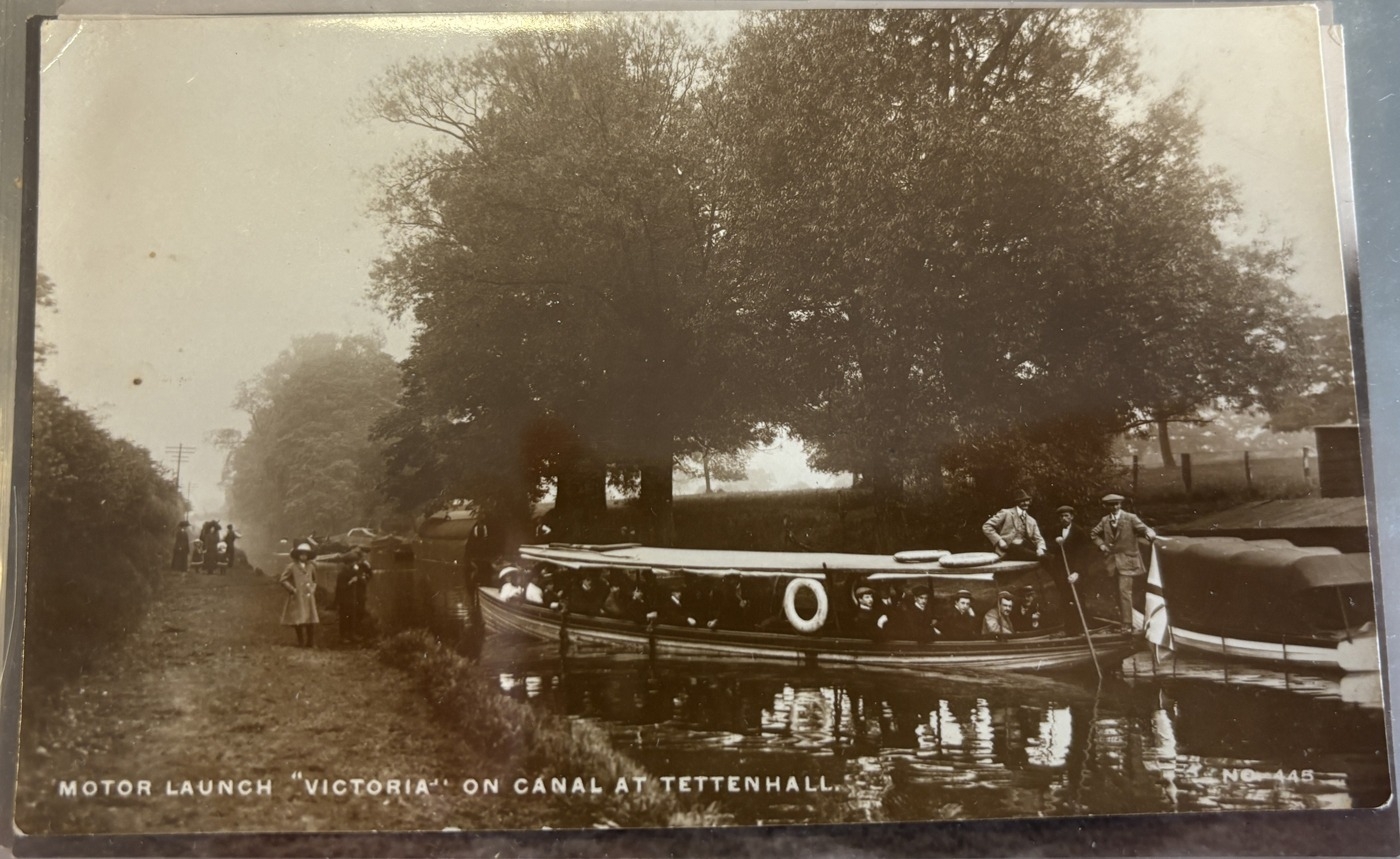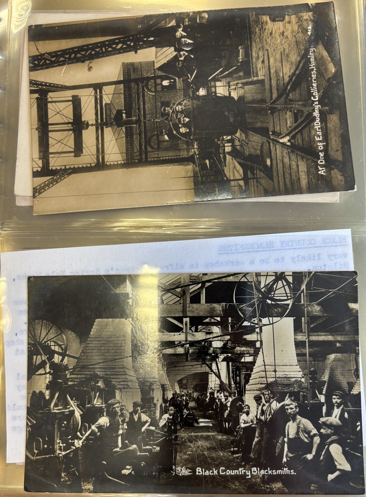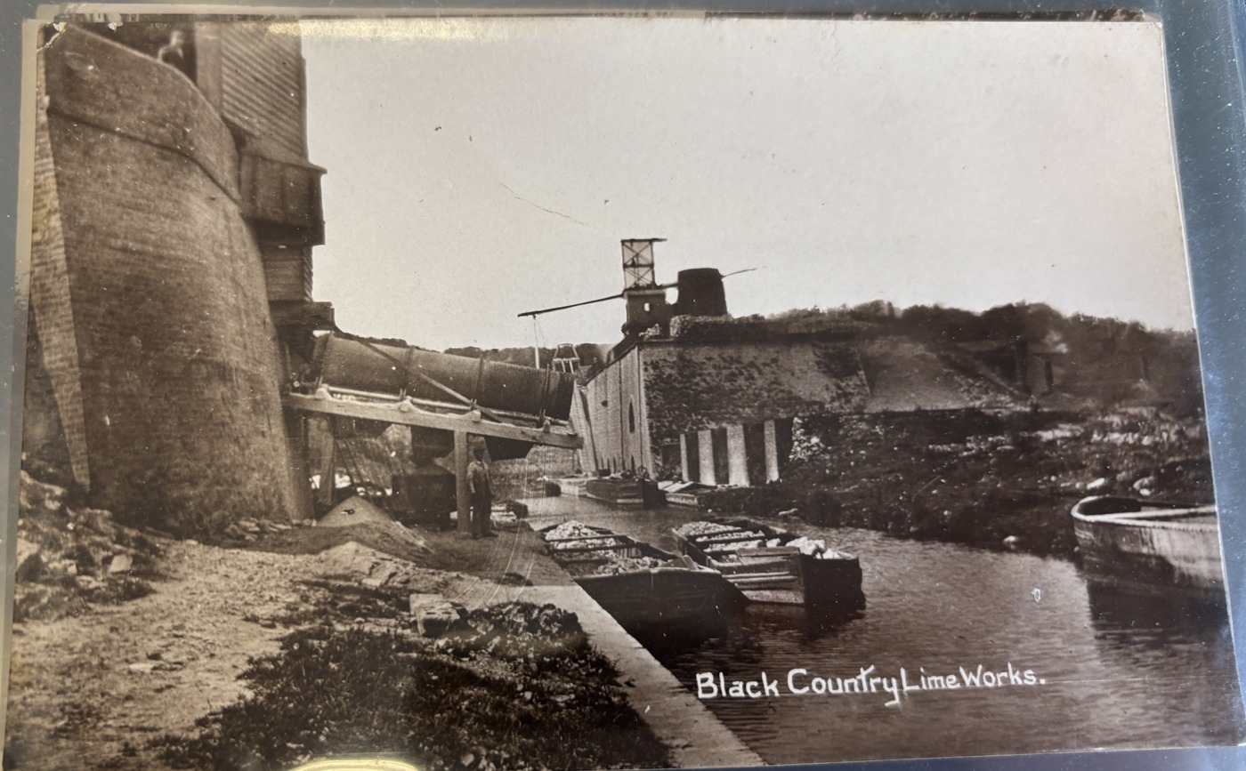 West Midlands. Coln. of vintage cards in one Lindner album, with ptd and R.P's of Dudley, Hagley, Sedgley, Walsall, Wolverhampton, incl. 'Black Country Blacksmiths', Black Country Lime Works, Canals, Collieries, Post Office Dudley, Guest Hospital, 'Motor Launch "Victoria" on Canal at Tettenhall', Priory Hall and Royal Orphanage Wolverhampton. Qty 76. (V)