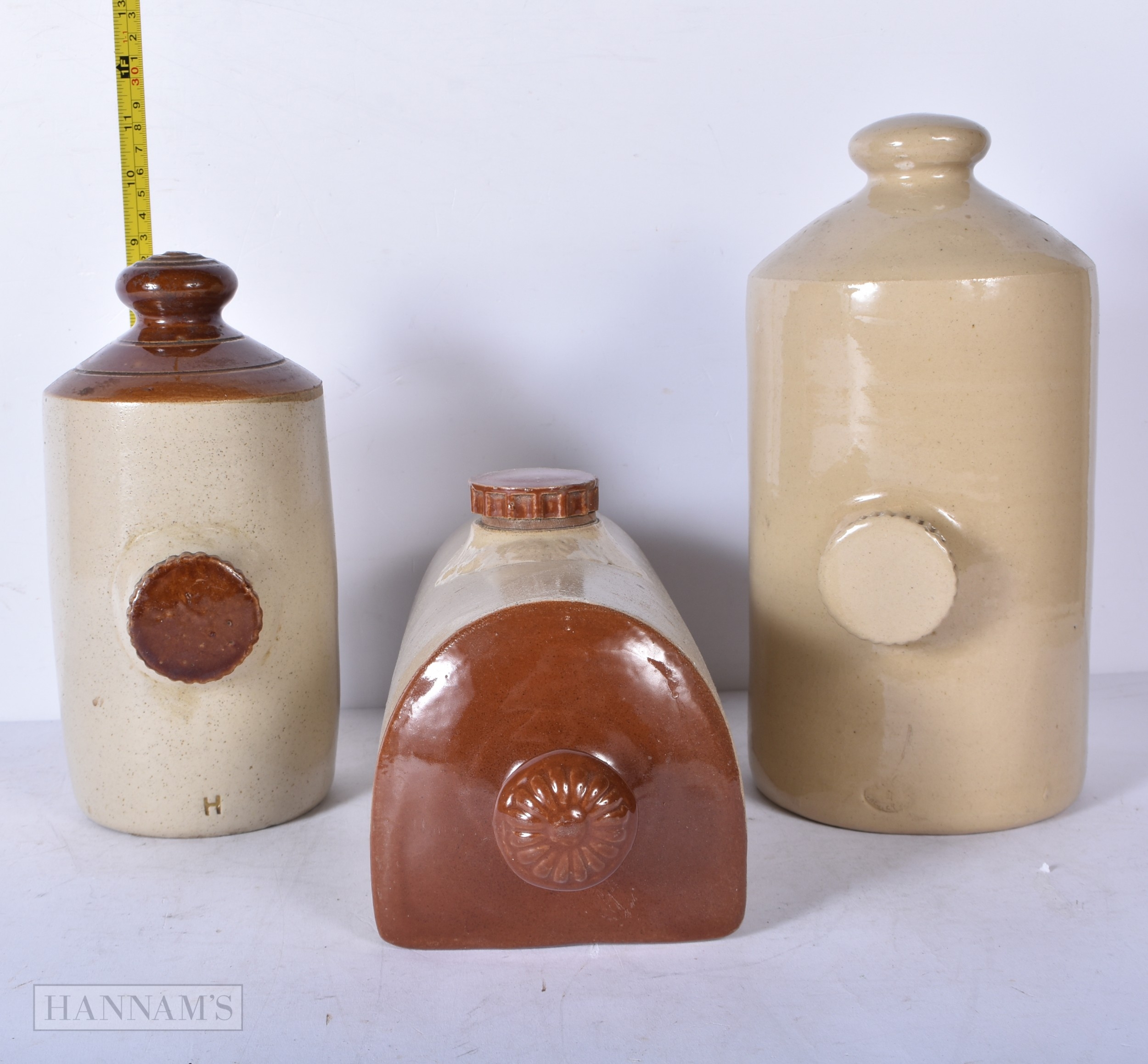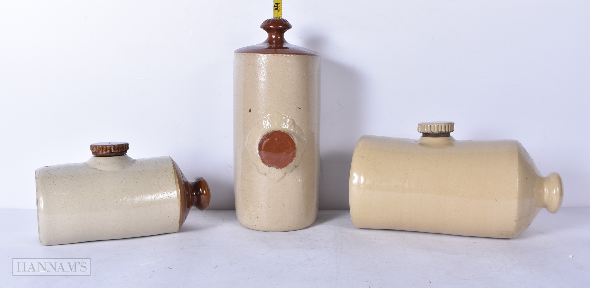 A collection of Antique stoneware bed warmers 28cm (3)