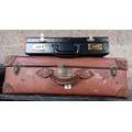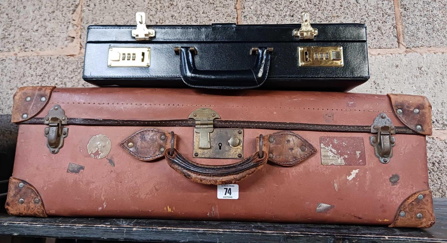 BLACK LEATHER BRIEFCASE & A VINTAGE FIBRE SUITCASE