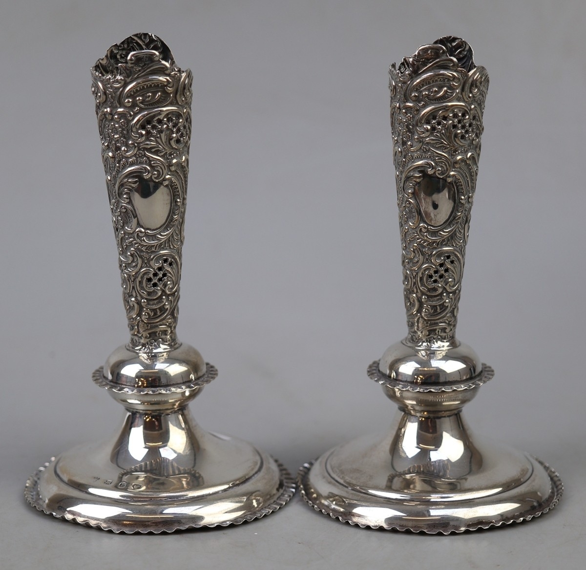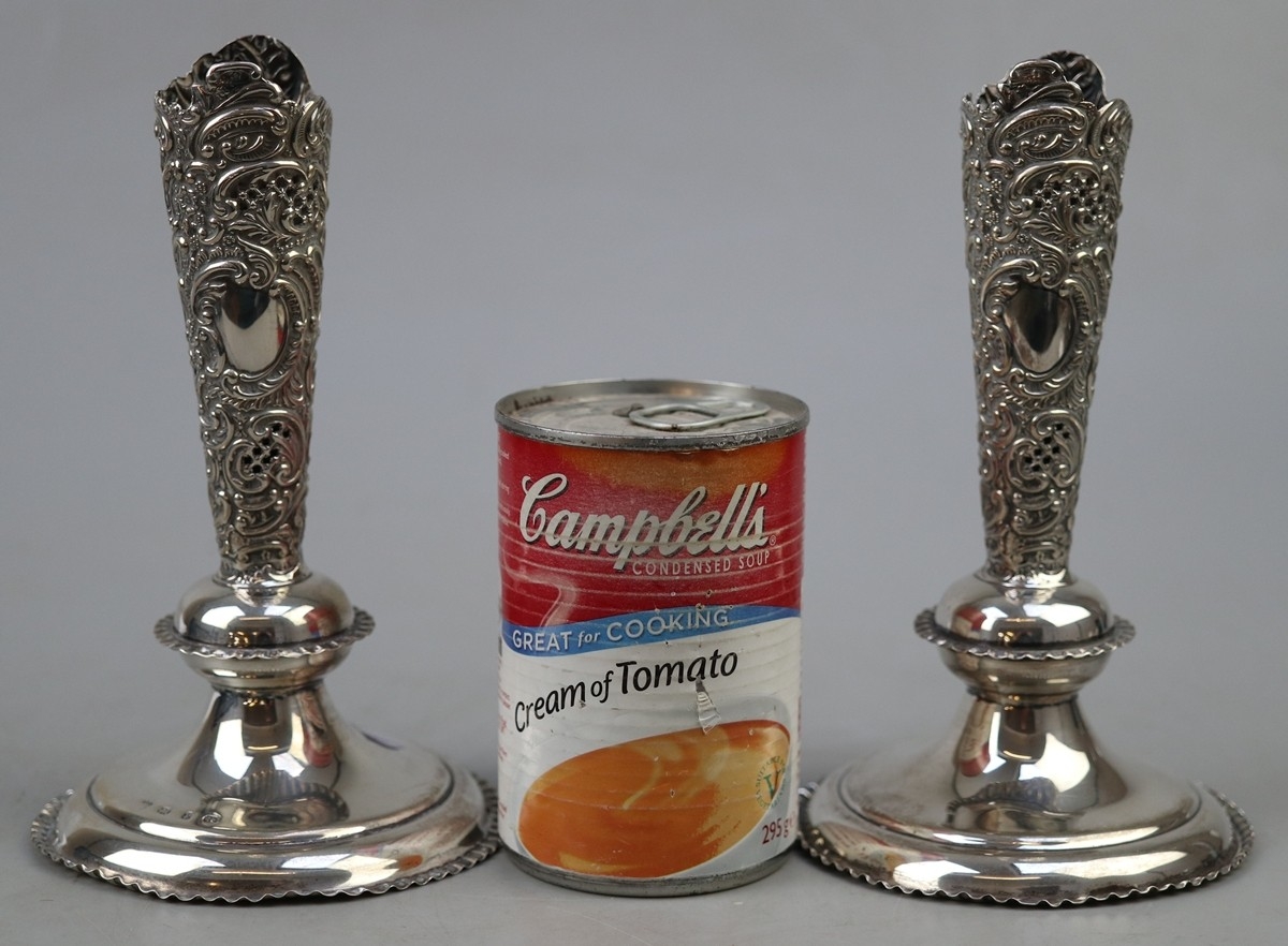 Pair of hallmarked silver vases - Approx 230g