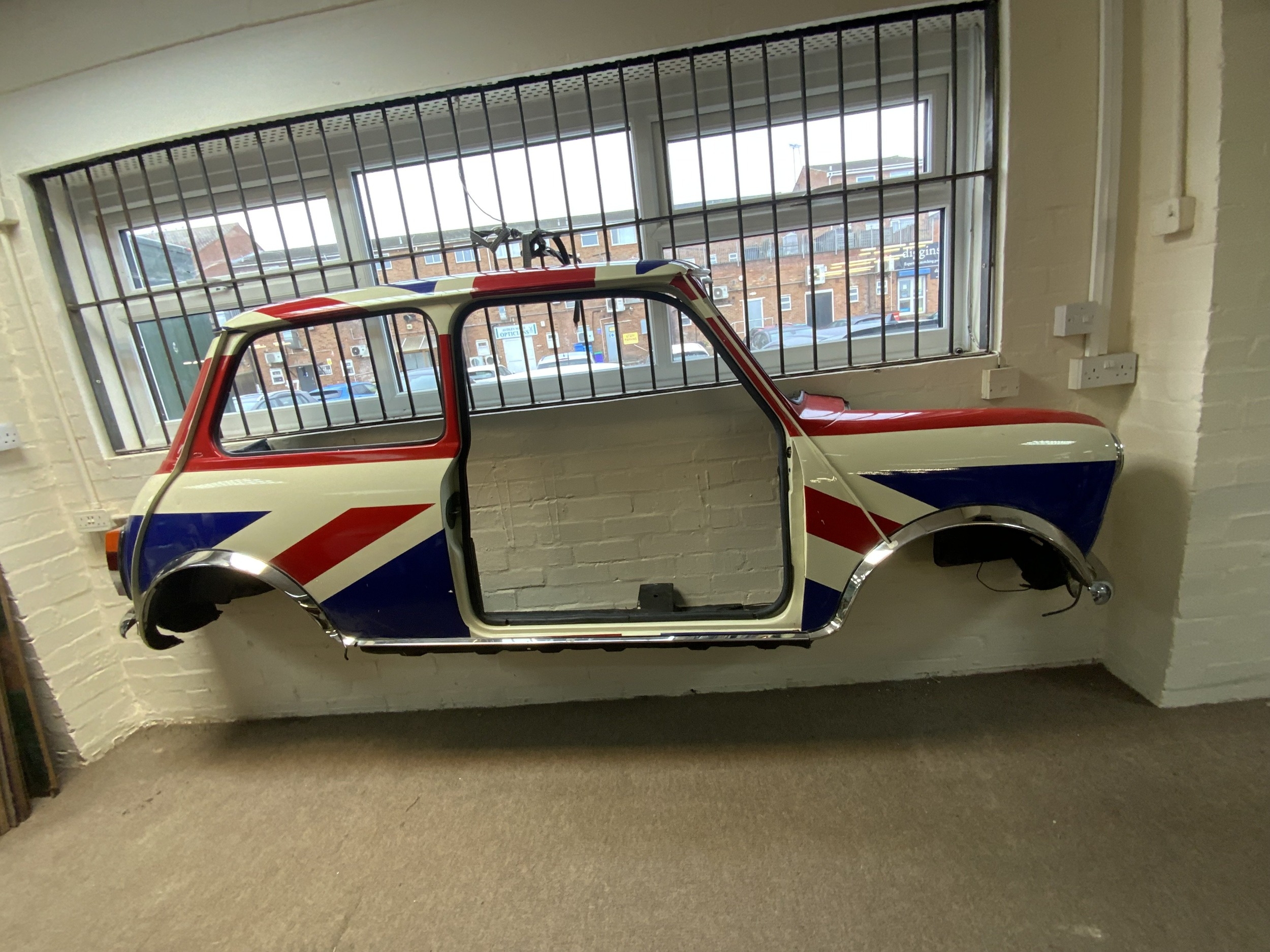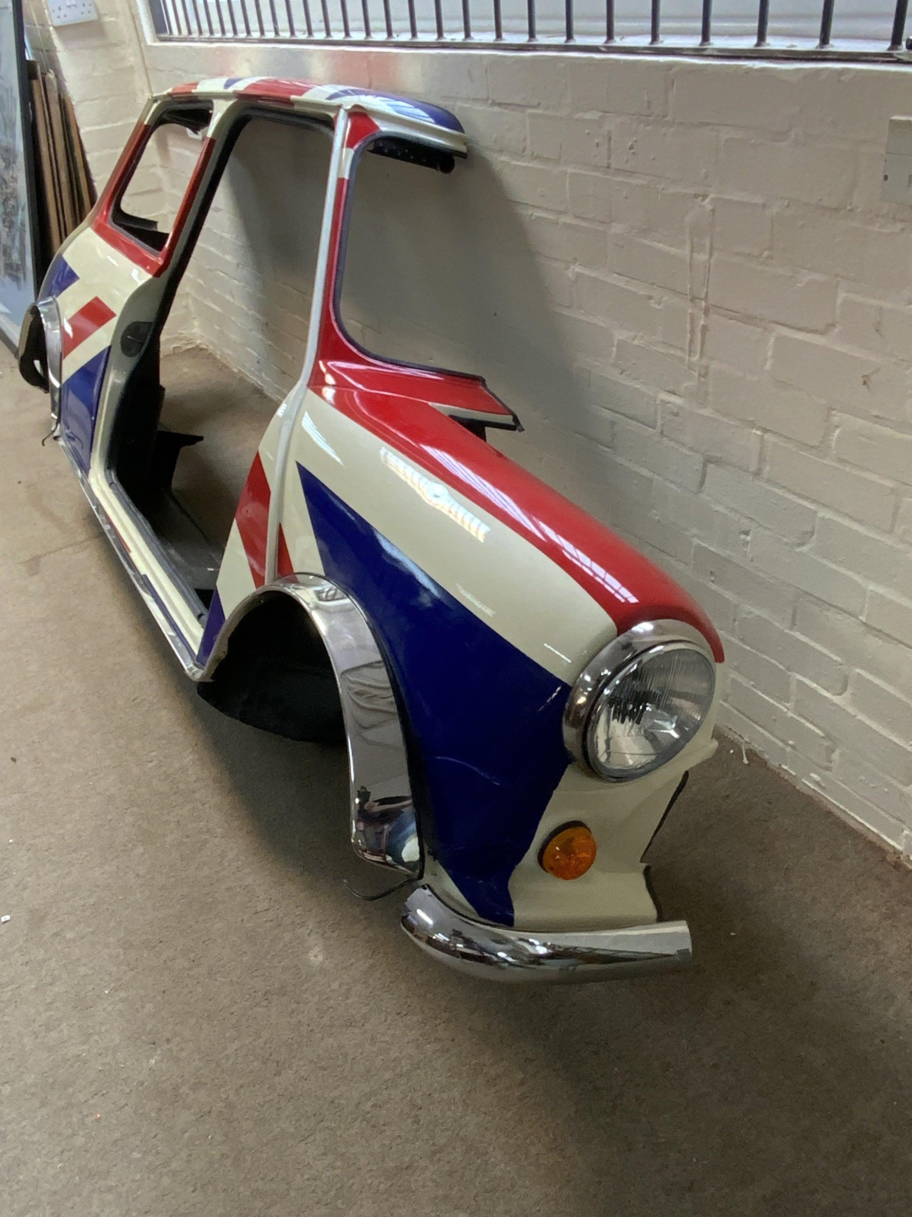 Union Jack Mini, A cut down mini approx 30cm deep with Union Jack design, chrome number sections.