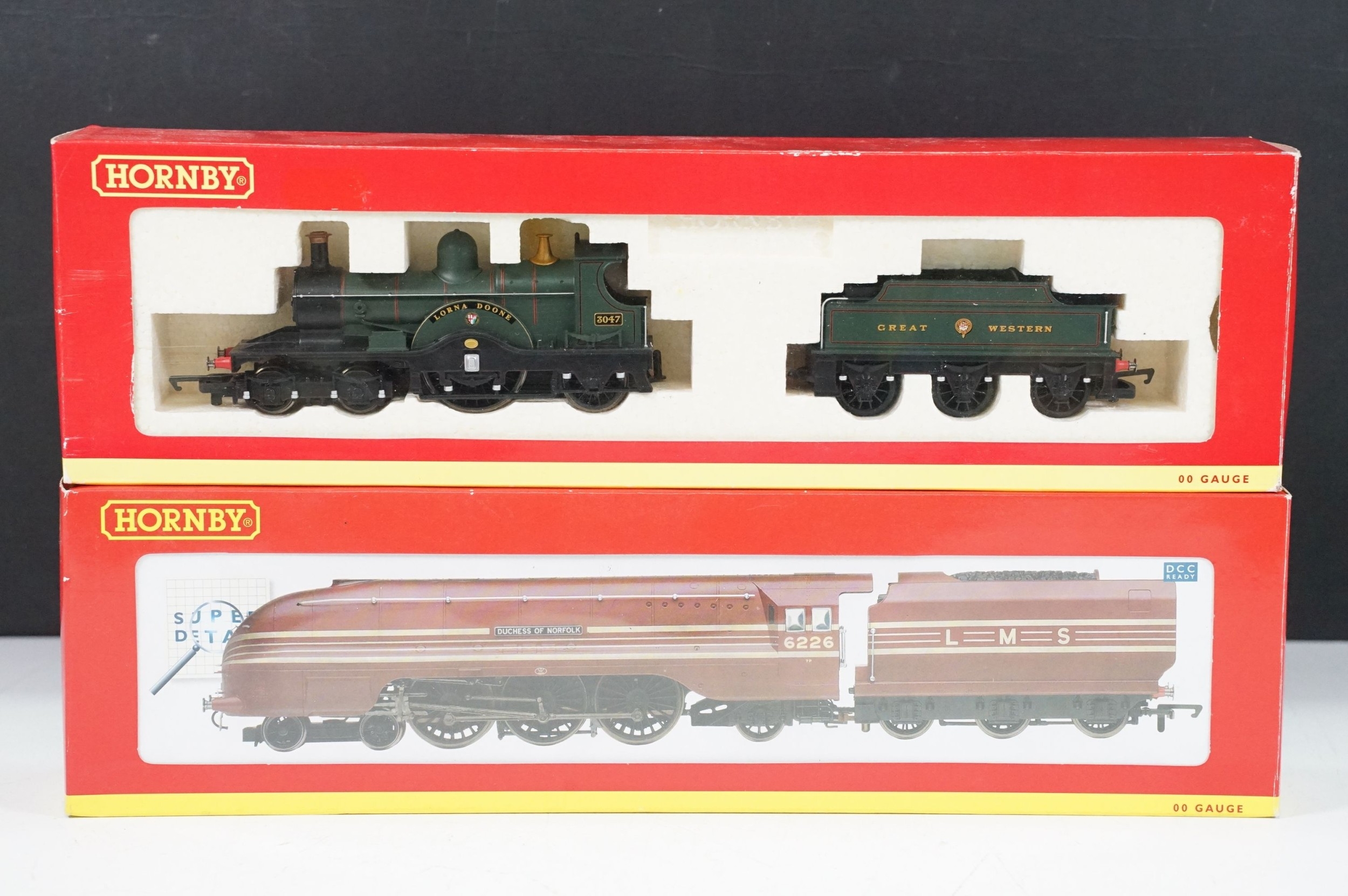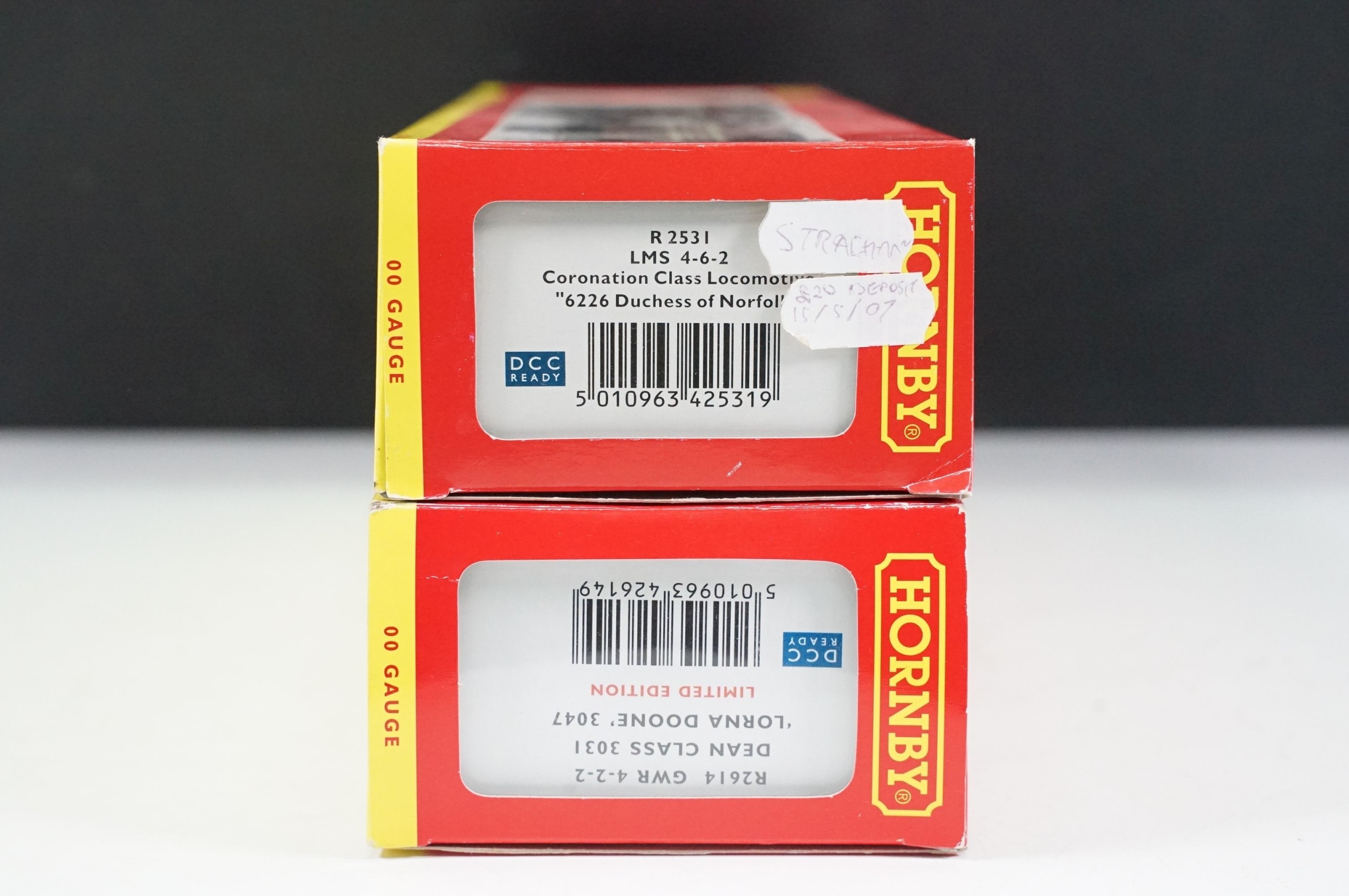 Two boxed Hornby OO gauge locomotives to include R2531 LMS 4-6-2 Coronation Class Locomotive 6226 Duchess of Norfolk and ltd edn R2614 GWR 4-2-2 Dean Class 3031 Lorna Doone 3047