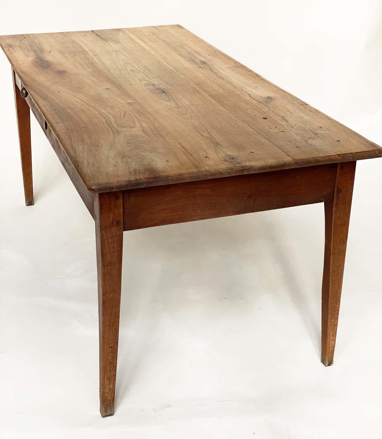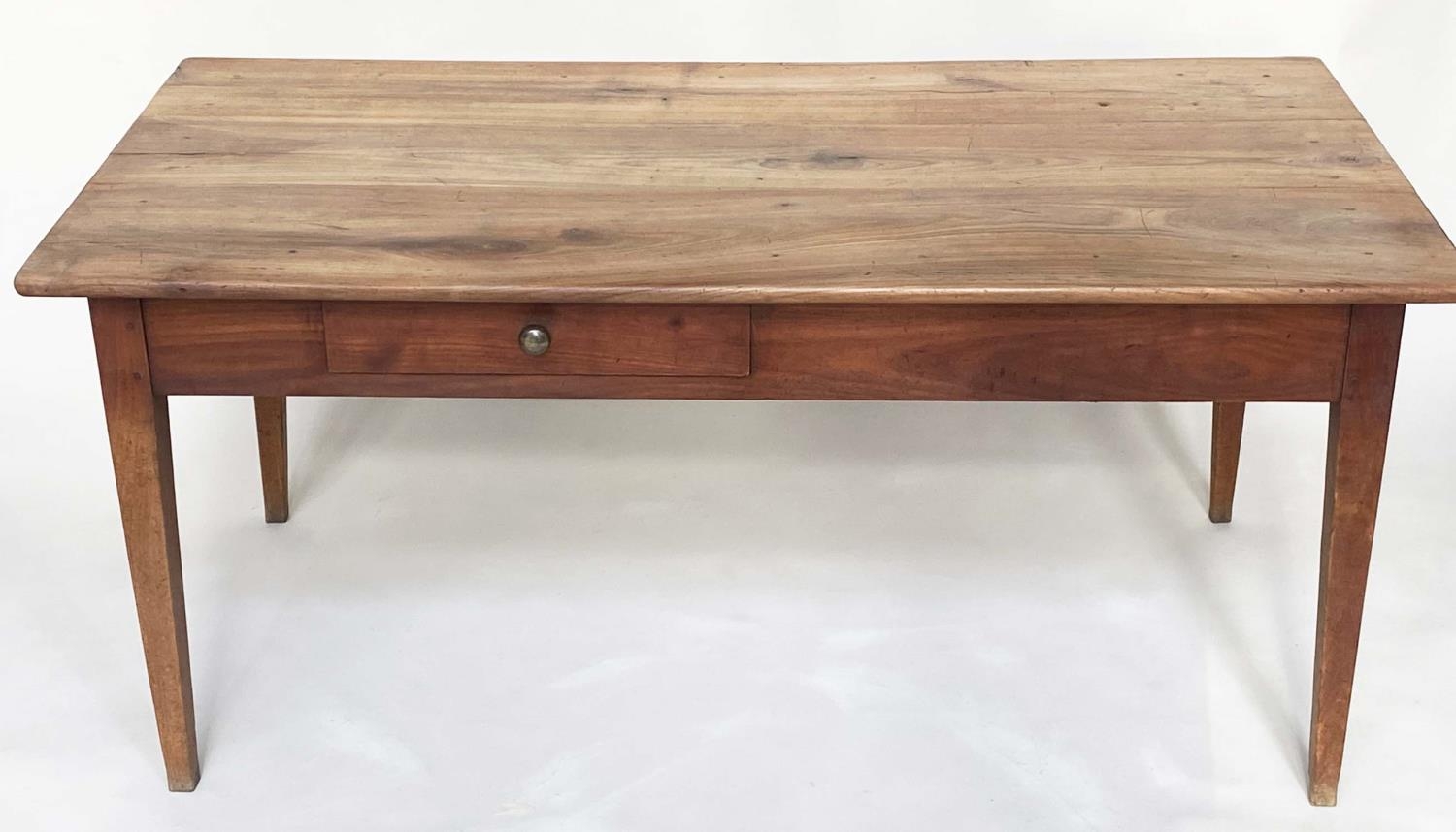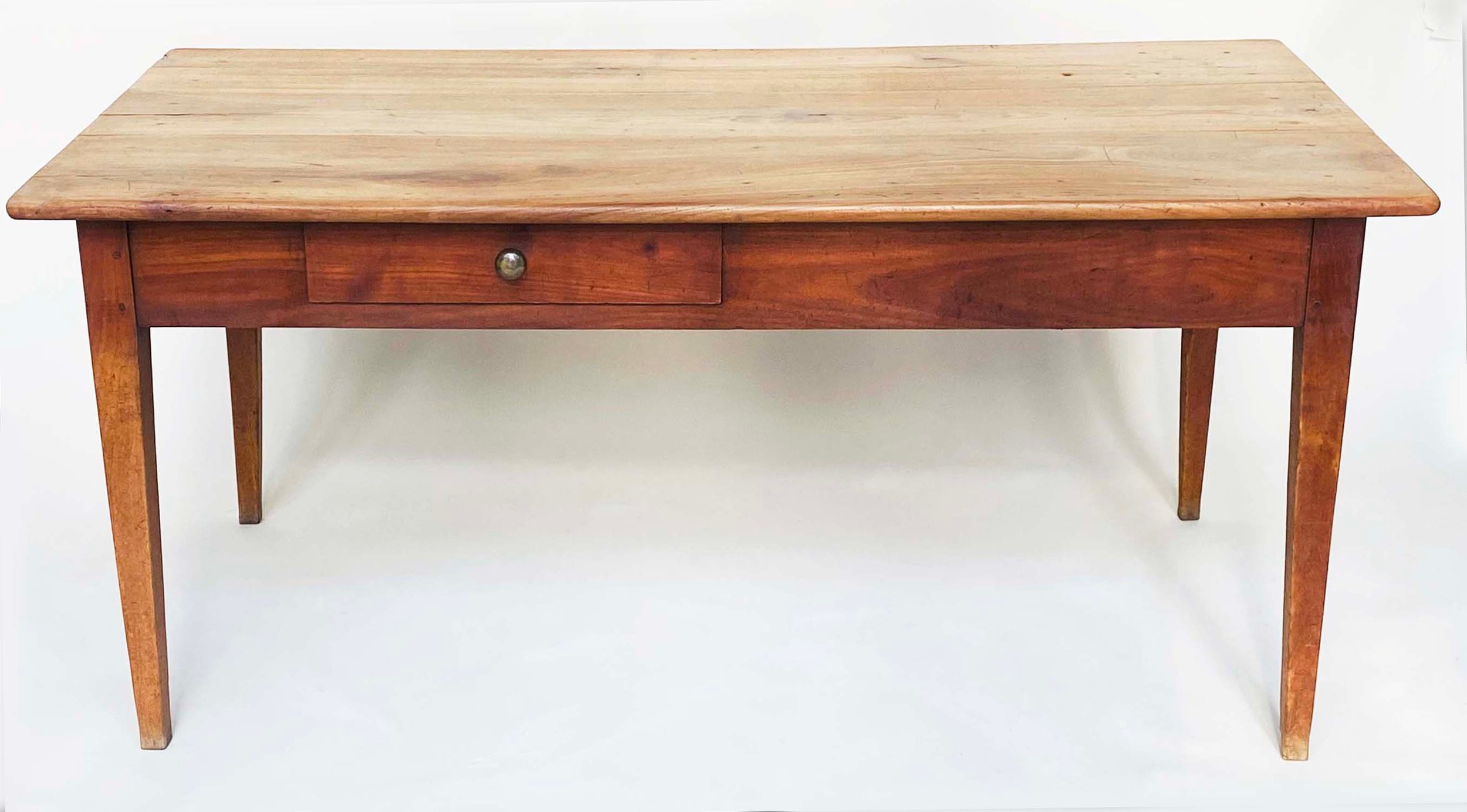 FARMHOUSE TABLE, 19th century French cherrywood with planked top opposing frieze drawers and square tapering supports, 167cm H x 81cm D x 74cm H.
