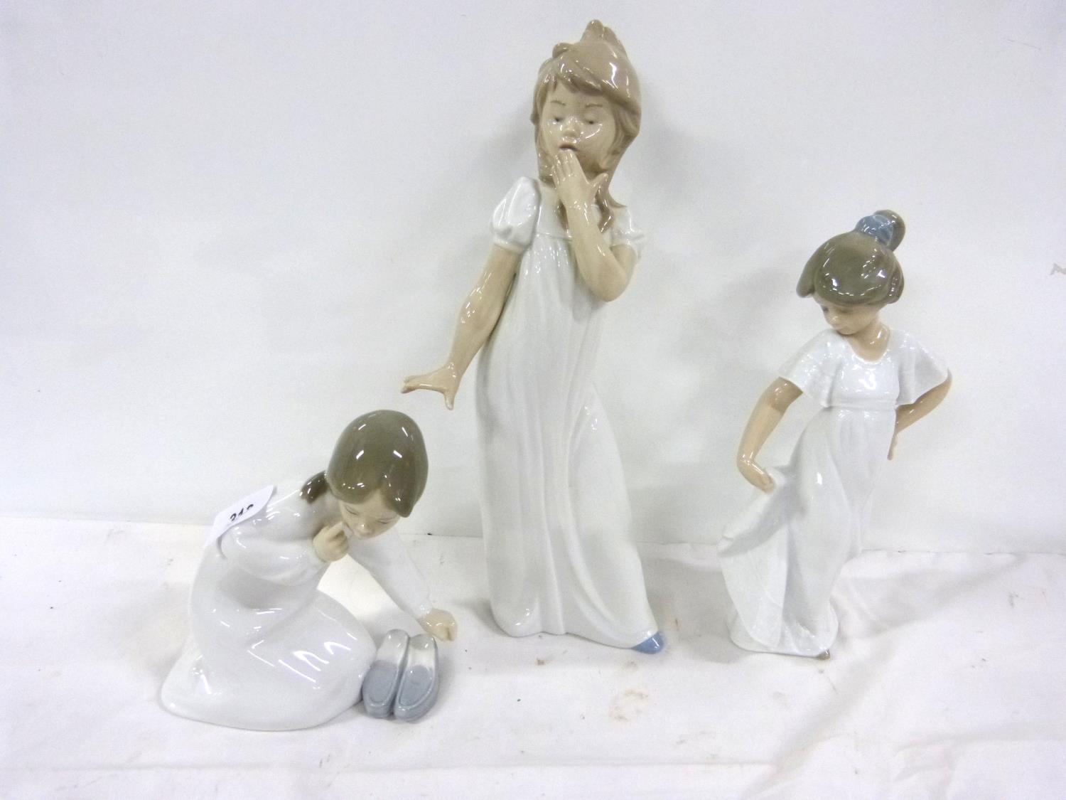 Lladro figure of a Little Girl with slippers and two Nao figures (3)