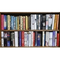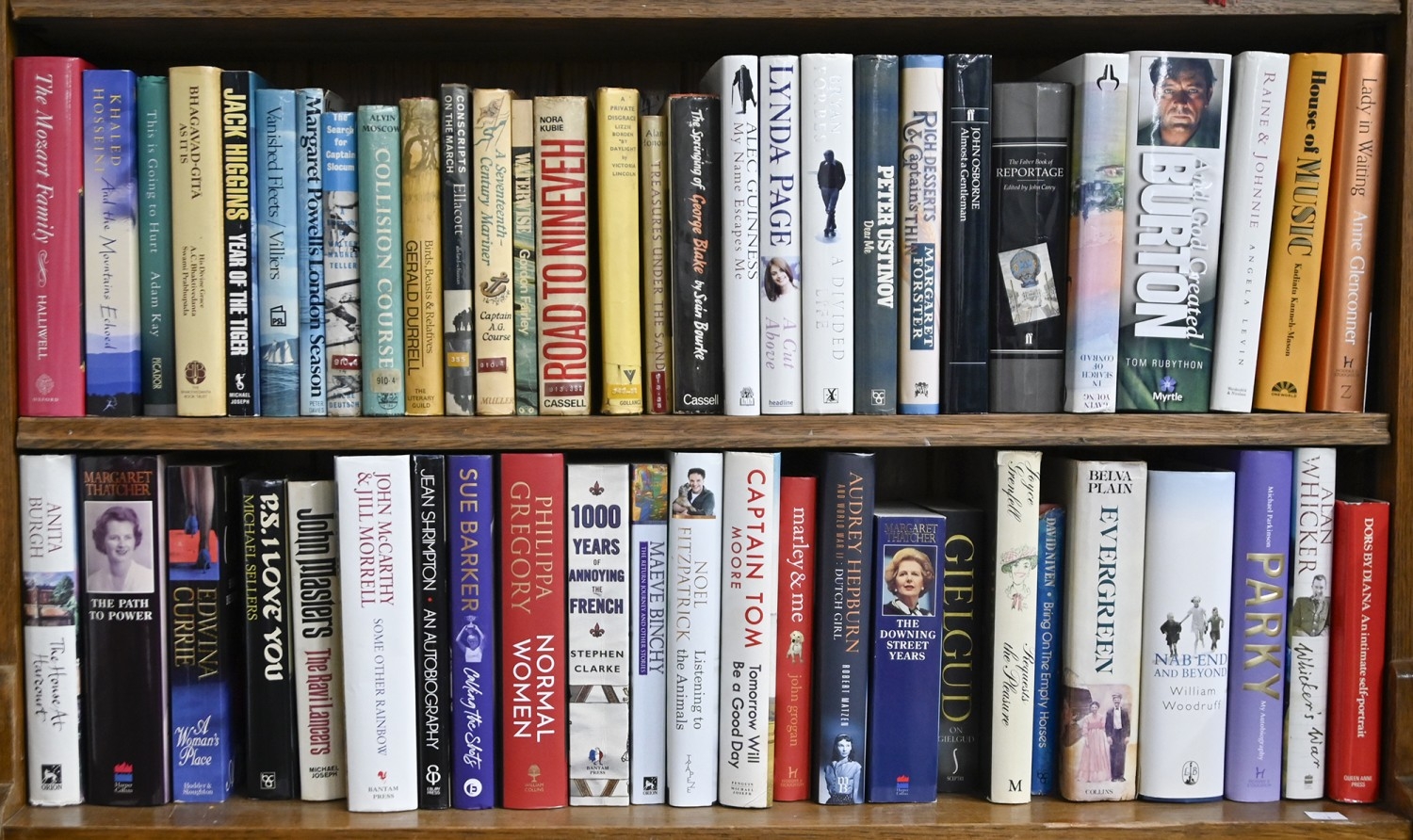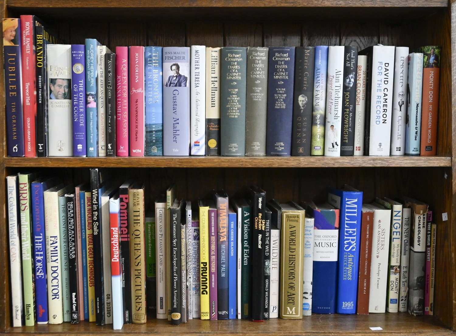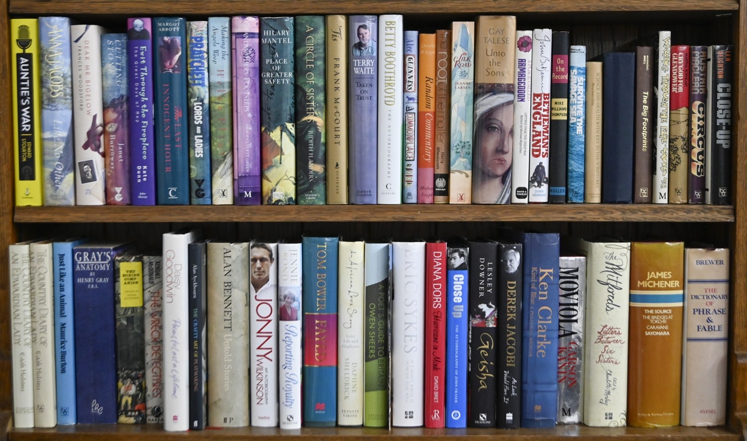 Books. Eighteen shelves of general stock, early 20th c and later, including Pratchett (Terry), Lords and Ladies, first edition, 1992, dj, hb, 8vo; art history, including Rembrandt and Leonardo Da Vinci; fashion and costume; Lord Byron and other literature; royal biographies and memoirs; travel; etc., mixed bindings and sizes