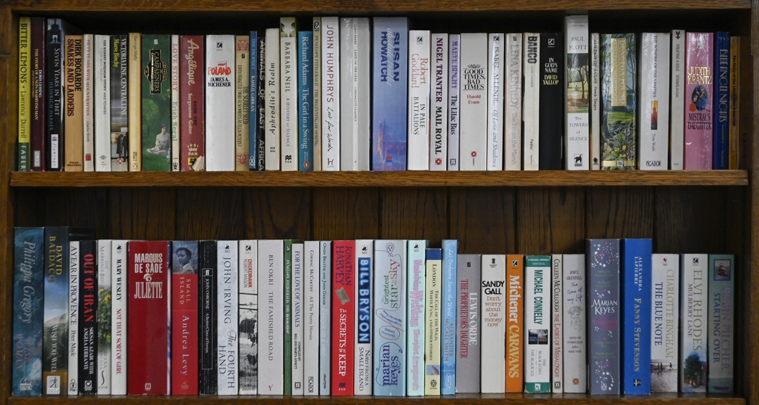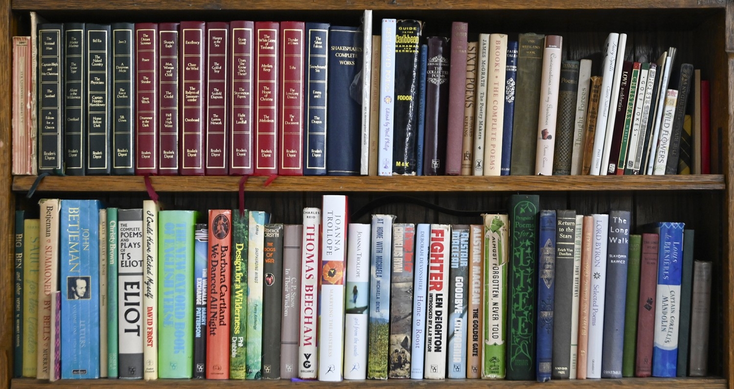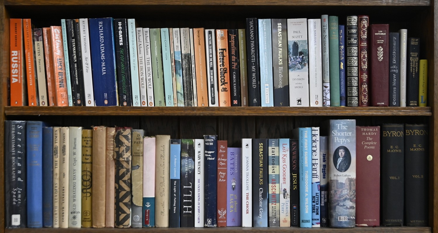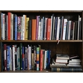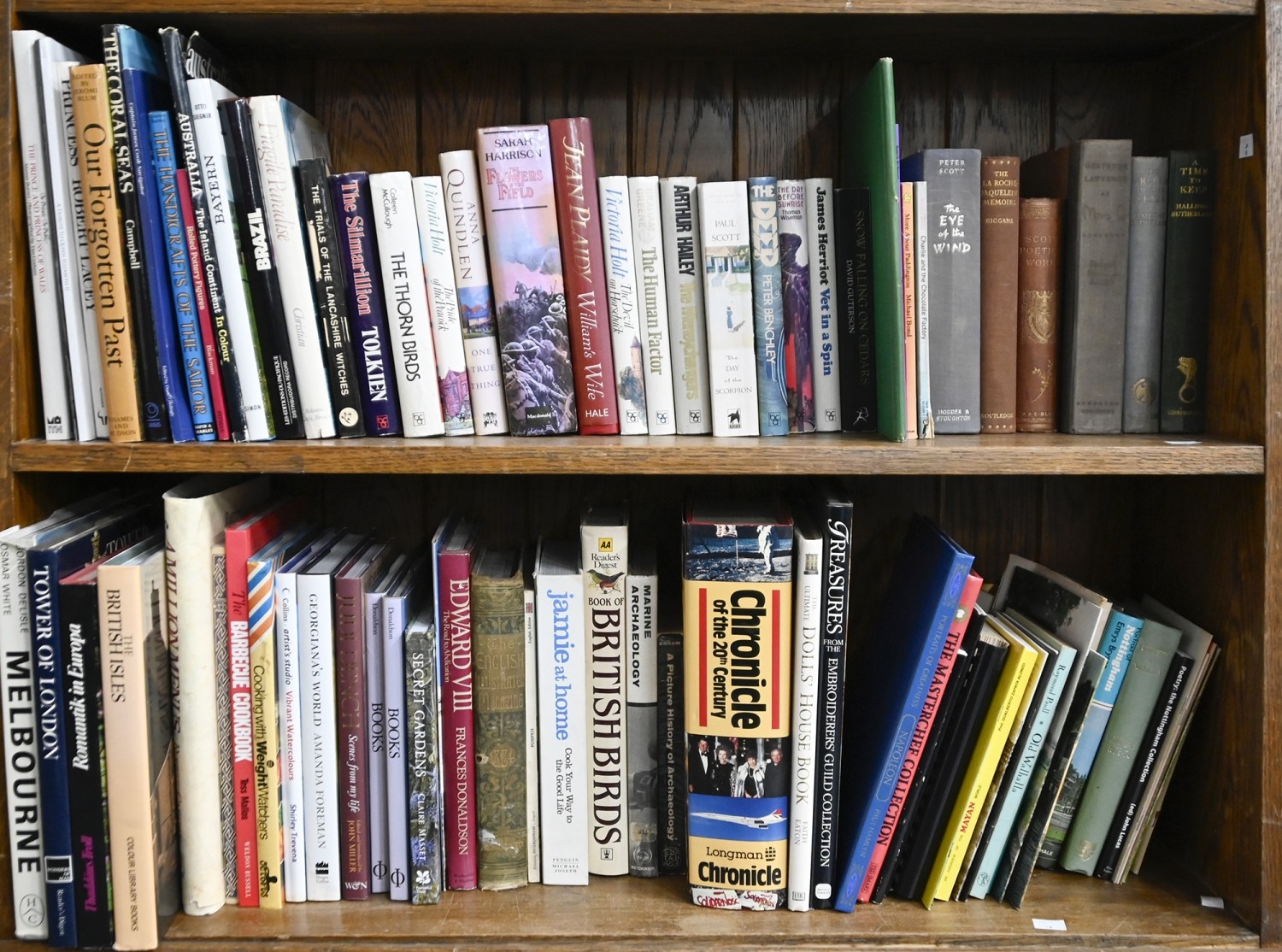 Books. Eighteen shelves of general stock, early 20th c and later, including Pratchett (Terry), Lords and Ladies, first edition, 1992, dj, hb, 8vo; art history, including Rembrandt and Leonardo Da Vinci; fashion and costume; Lord Byron and other literature; royal biographies and memoirs; travel; etc., mixed bindings and sizes