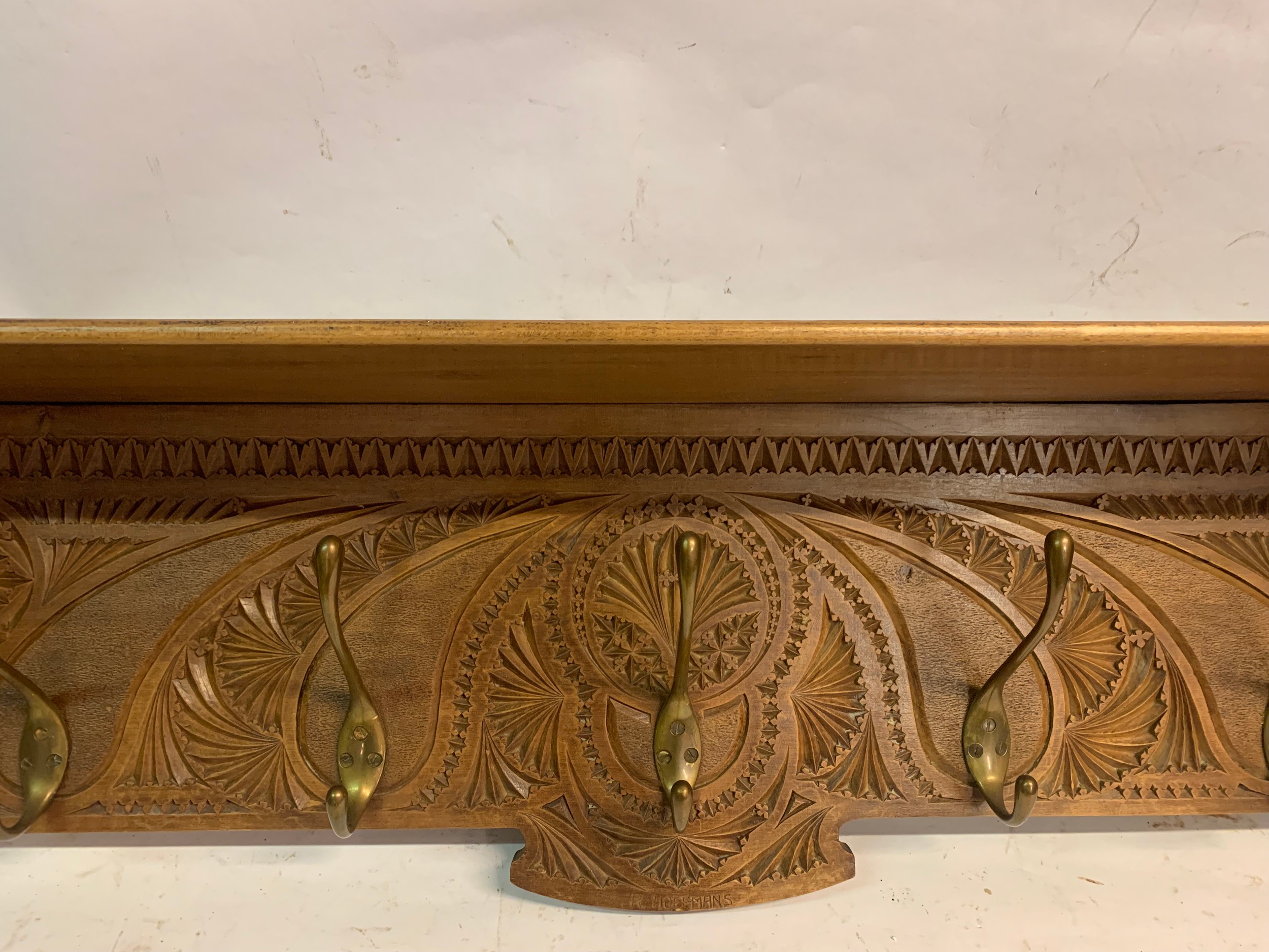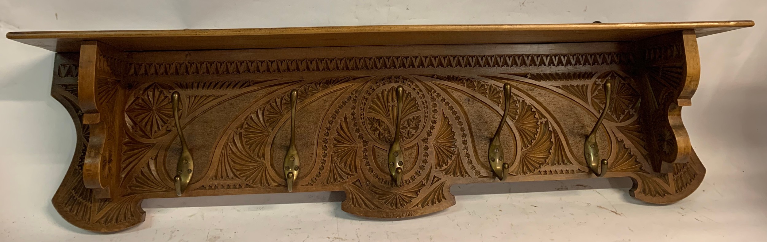 Decoratively Carved Wood French Coat Hook Shelf. 100 x 16 x 27 cms