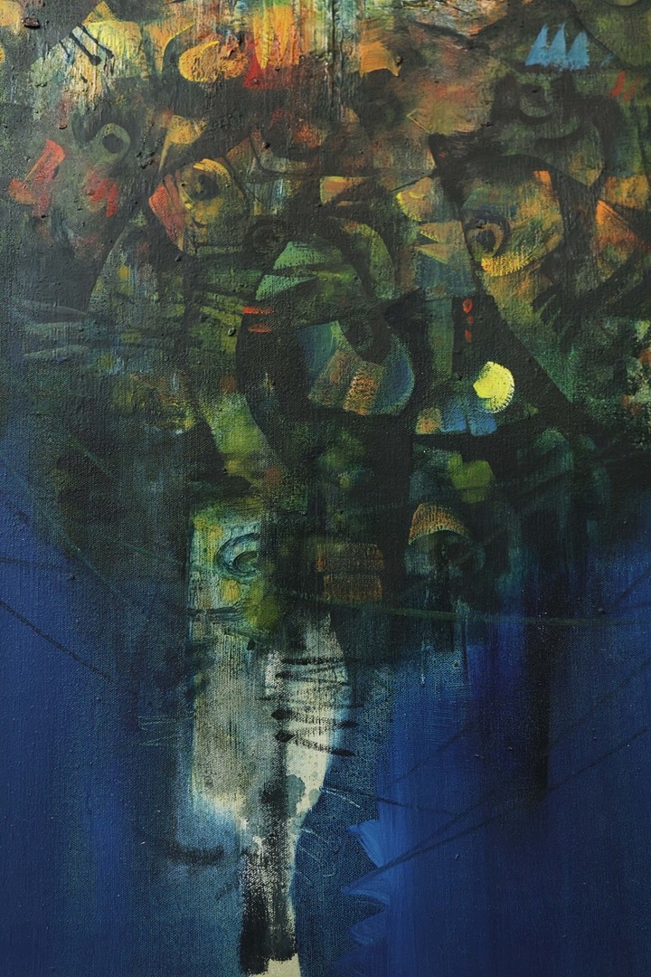 ROGER SAN MIGUEL (B. PHILIPPINES, 1940). Fish. Oil on Canvas, 76cms x 76cms, signed, Framed.