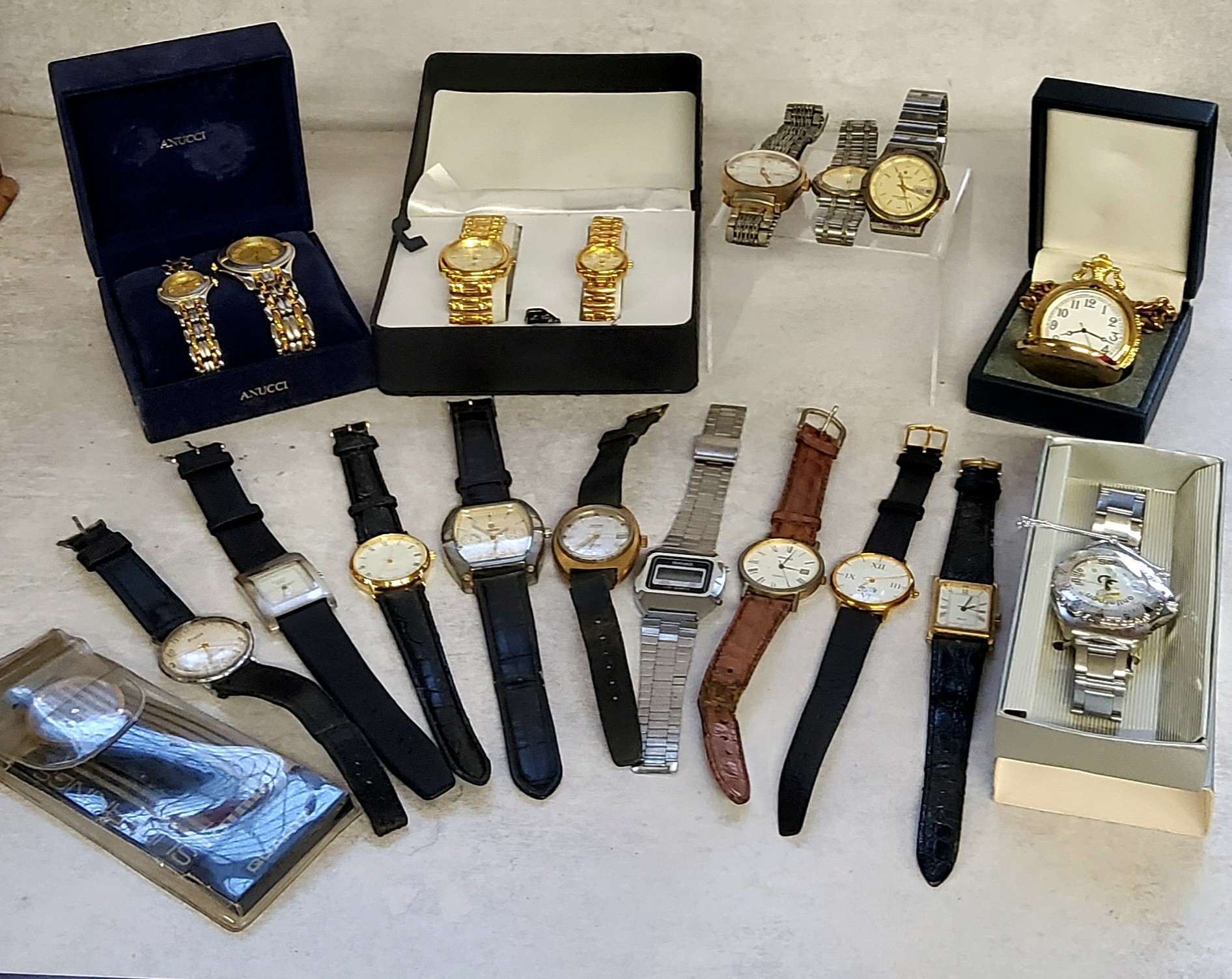 Various promotional wristwatches including Holstein Pils, Kronenburg 1664, Pepsi-Cola & Superkings; a vintage Russian Sekonda Automatic day date gold plated gents wristwatch, 27 jewel movement, silver dial, day date aperture at three, later metal strap c.1970s; others including Accurist etc.