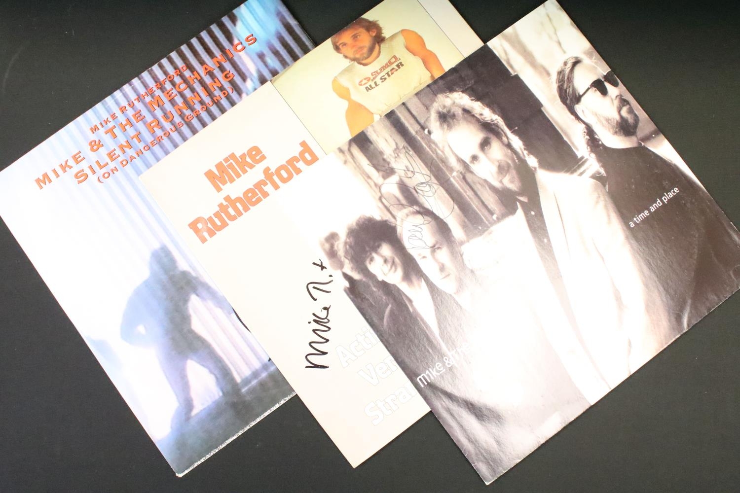 Vinyl / Autographs - 10 Genesis related signed items to include: Steve Hackett - 2 albums and three 12” singles all signed by Steve Hackett including test pressings and promos, 5 Mike & The Mechanics 12” singles all signed by Mike Rutherford and Paul Carrack. Condition VG+ overall