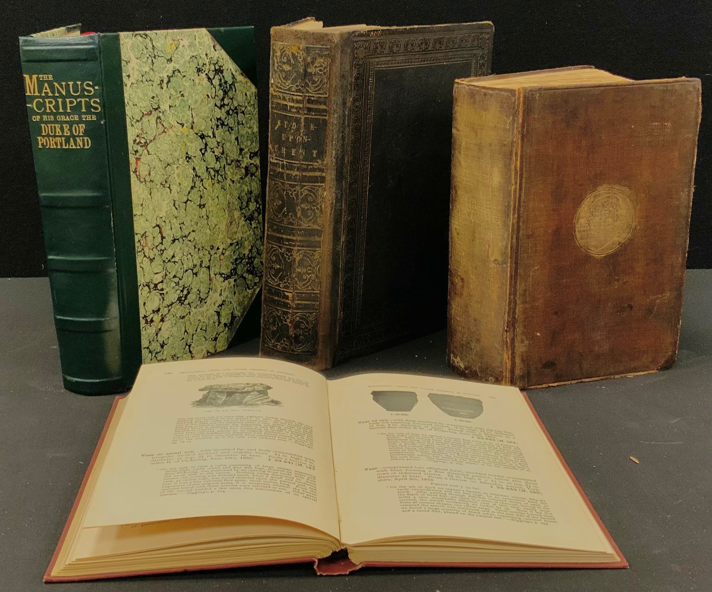 Derbyshire & bordering regions - Armitage (Harold) Chantrey Land: Being an Account of the North Derbyshire Village of Norton, London, Sampson Low, 1910; The Borough of Stoke-upon-Trent in the Commencement of the Reign of Queen Victoria by John Ward - 1843 - first edition, leather and marbled covers including folding map, family tree, facsimile and numerous illustrations; Sheffield Public Museum catalogue of Bateman Antiquities; The Manuscripts of his grace The Duke of Portland (4)