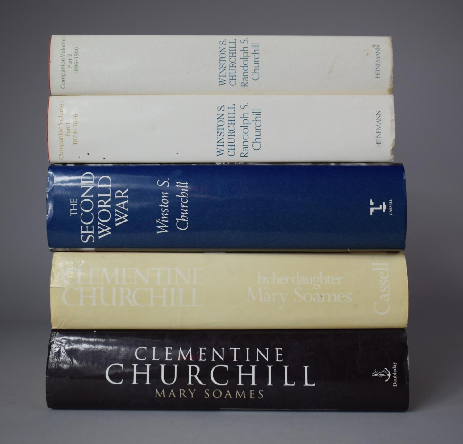 A Collection of Five Bound Volumes on a Topic of Winston Churchill by Randolph Churchill and Mary Soames etc