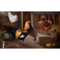 Paint is beginning to craze and lift, would benefit from a light clean. Presented in the gilt slip of a once larger frame.