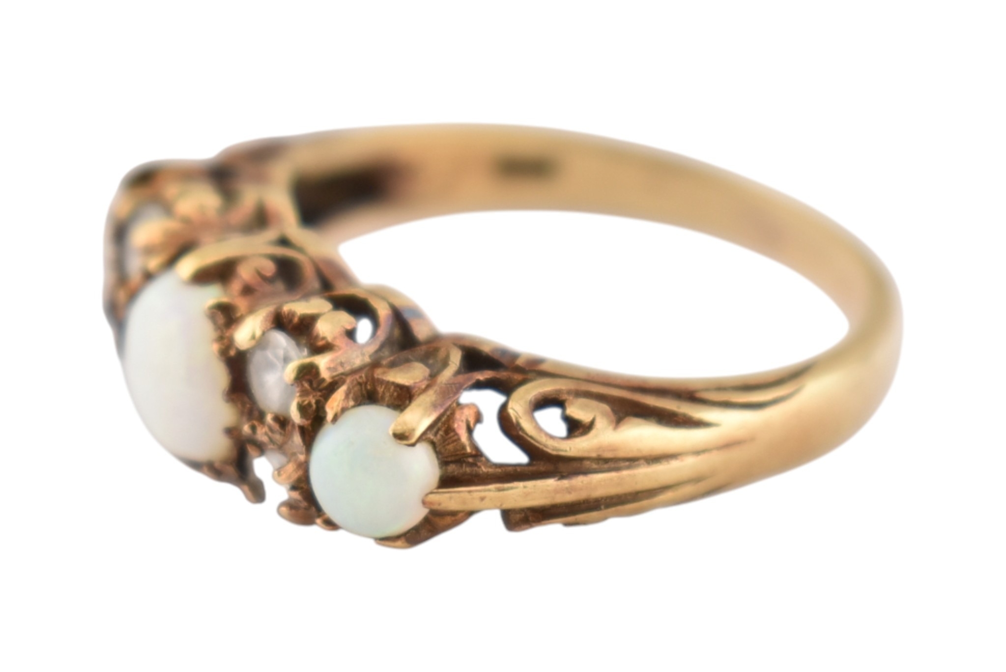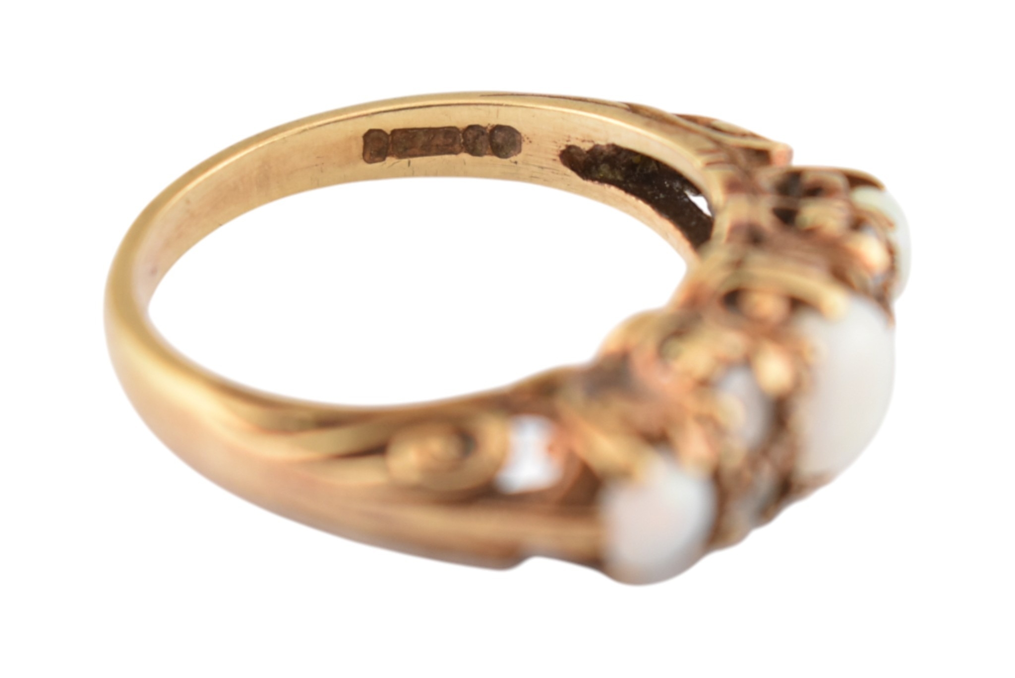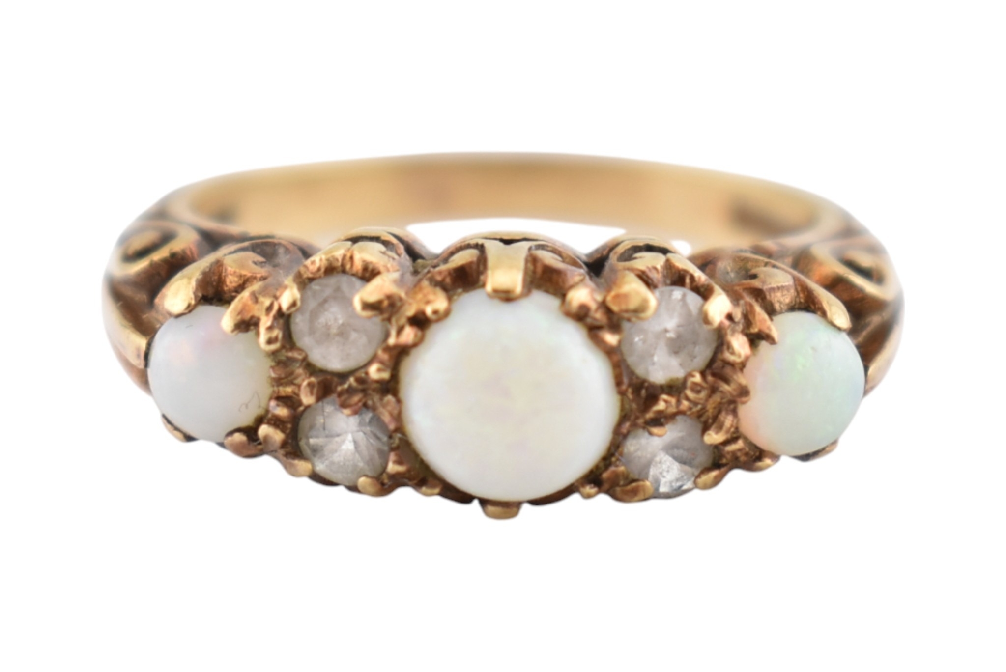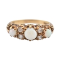 A hallmarked 9ct gold five stone opal and white stone ring. Hallmarked London, sponsors mark H&S. Weight 3.4g. Size N.5