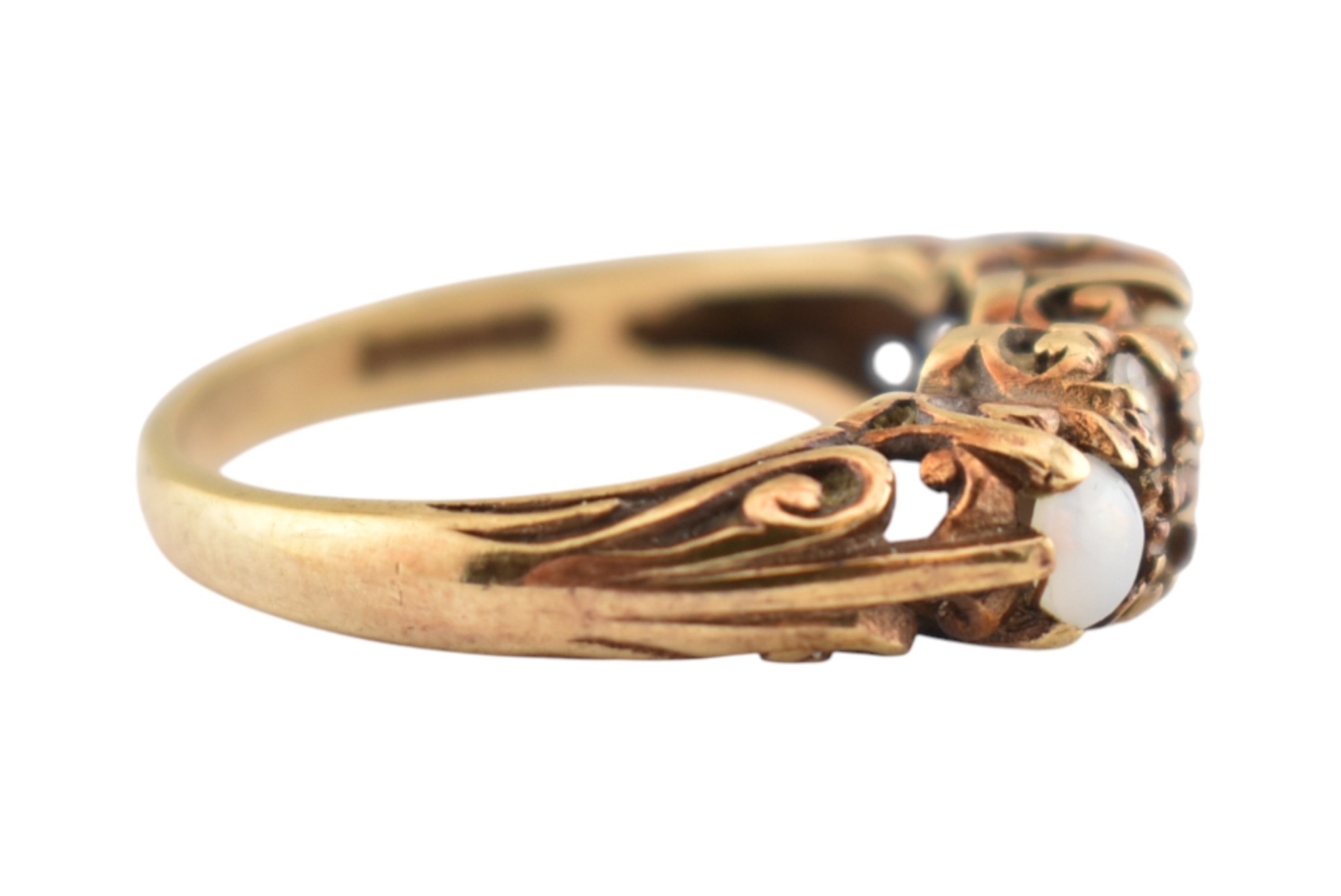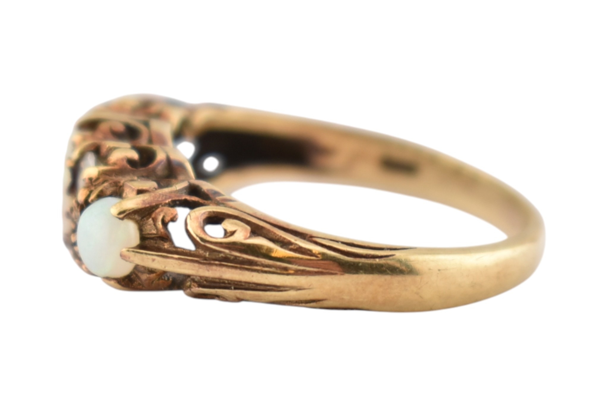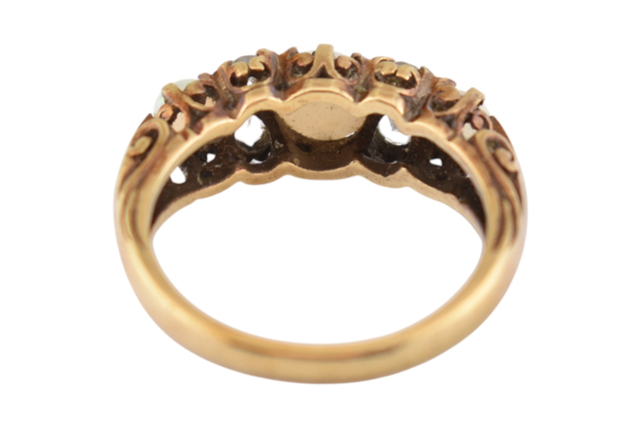 A hallmarked 9ct gold five stone opal and white stone ring. Hallmarked London, sponsors mark H&S. Weight 3.4g. Size N.5