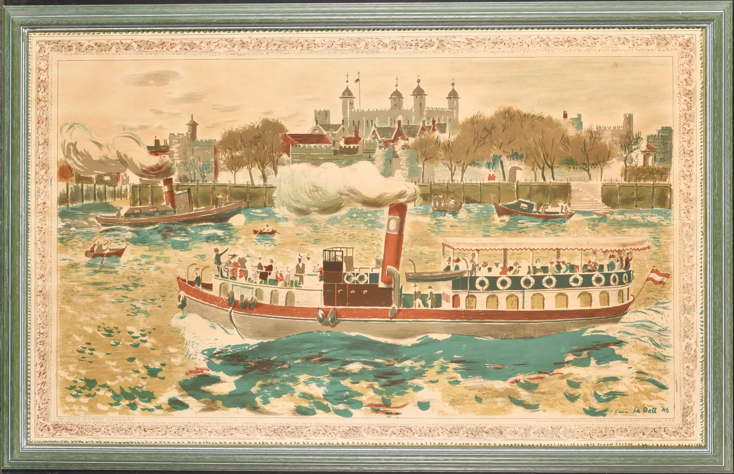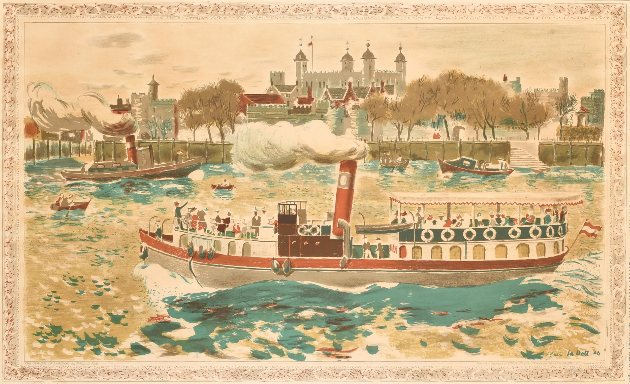 Edwin La Dell (1914-1970) British. "The Tower of London", Baynard Press for school print series, Lithograph, overall 19.25" x 29.5" (48.9 x 74.9cm)