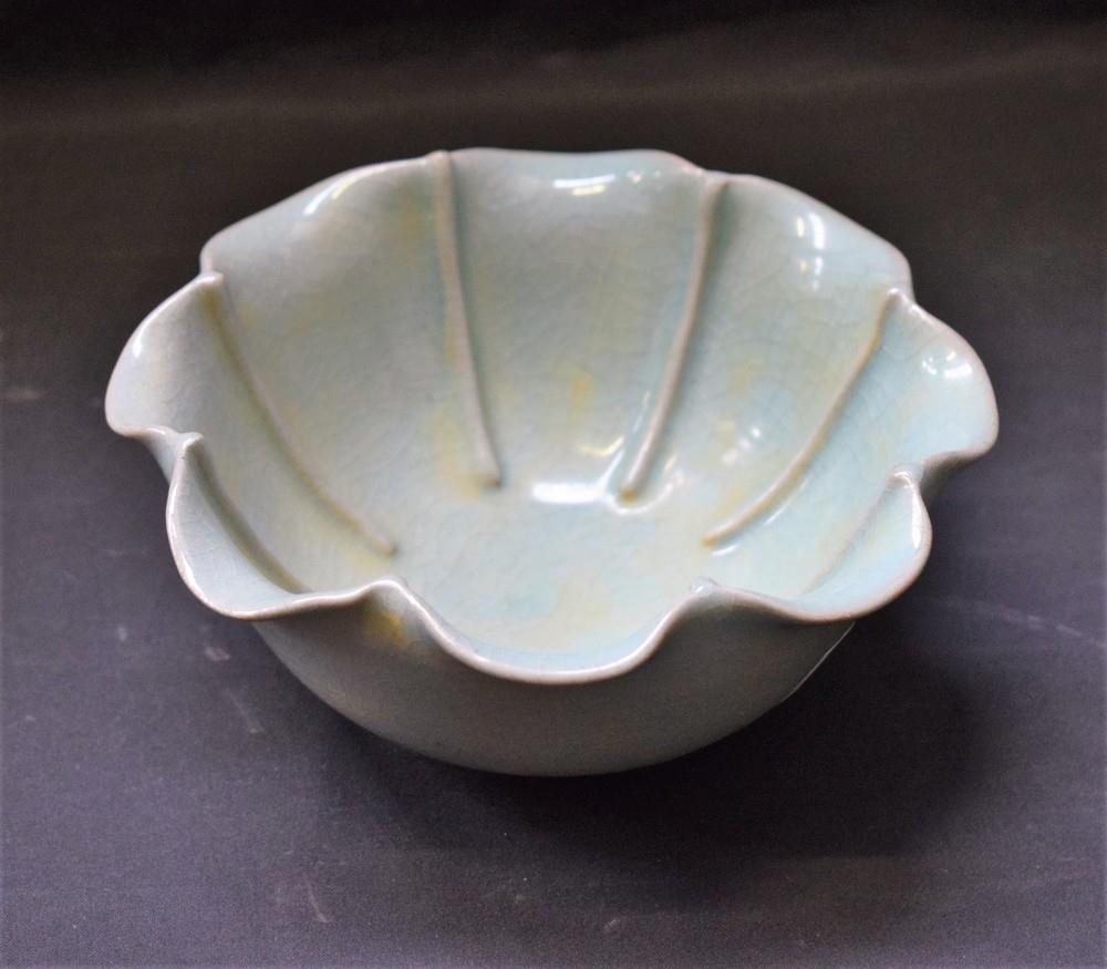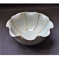A Chinese pottery celadon glazed song bowl, ridged lobed body, crackle glaze, unmarked, 15.5cm diameter