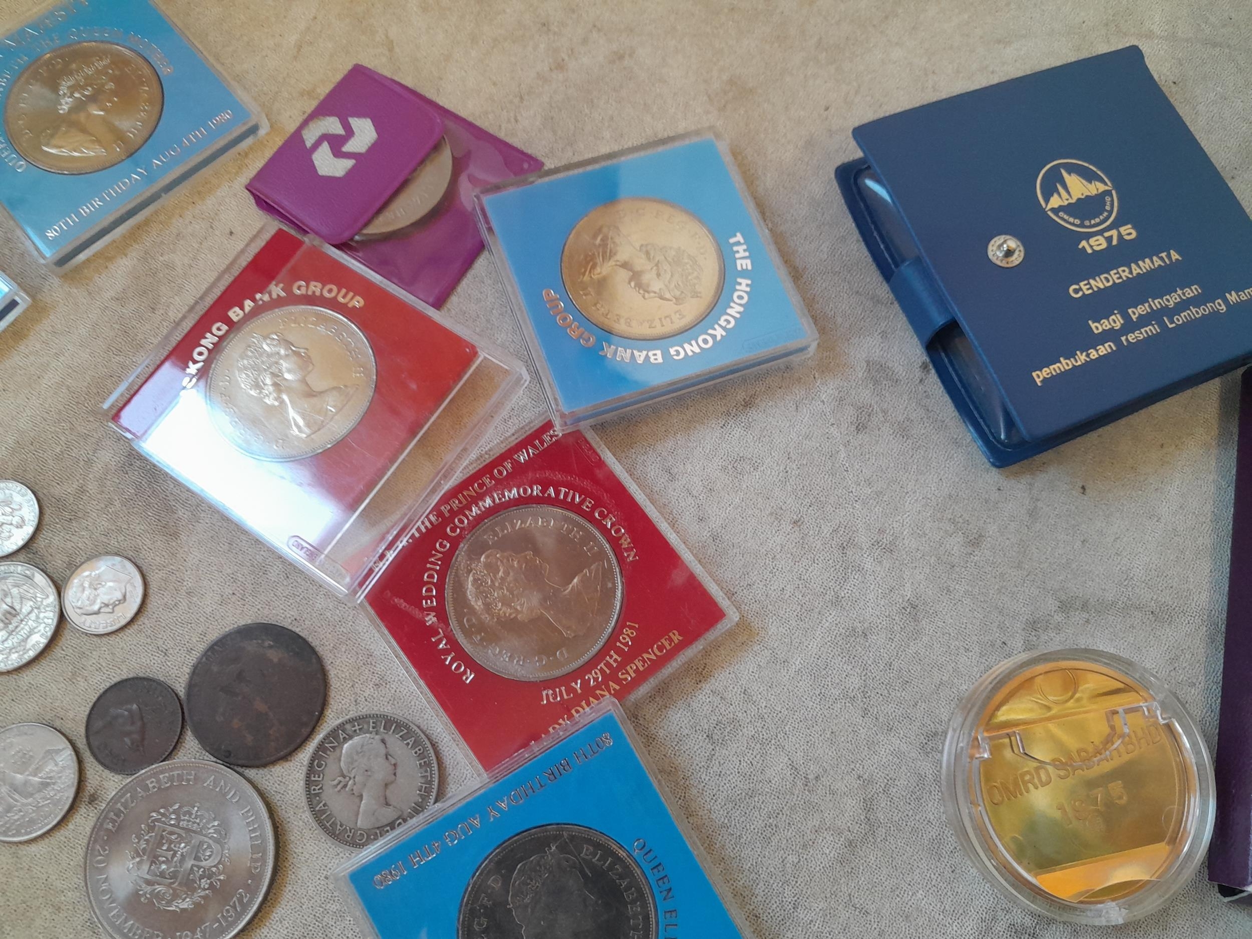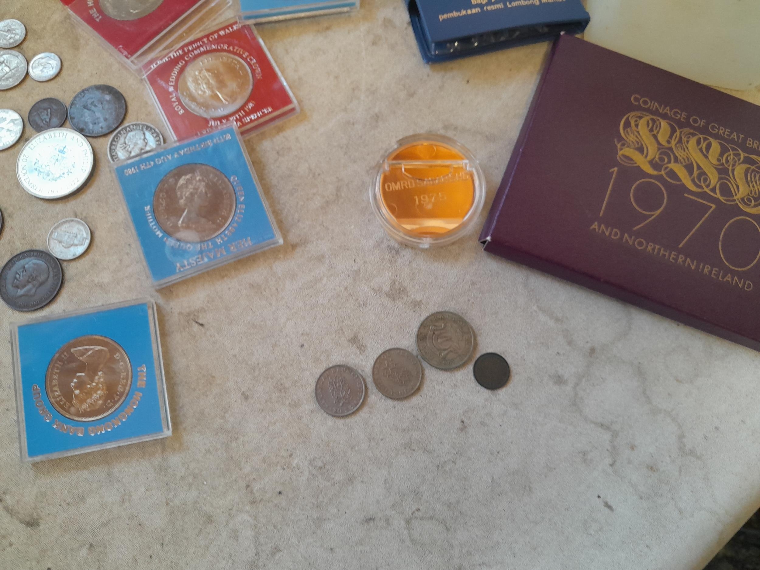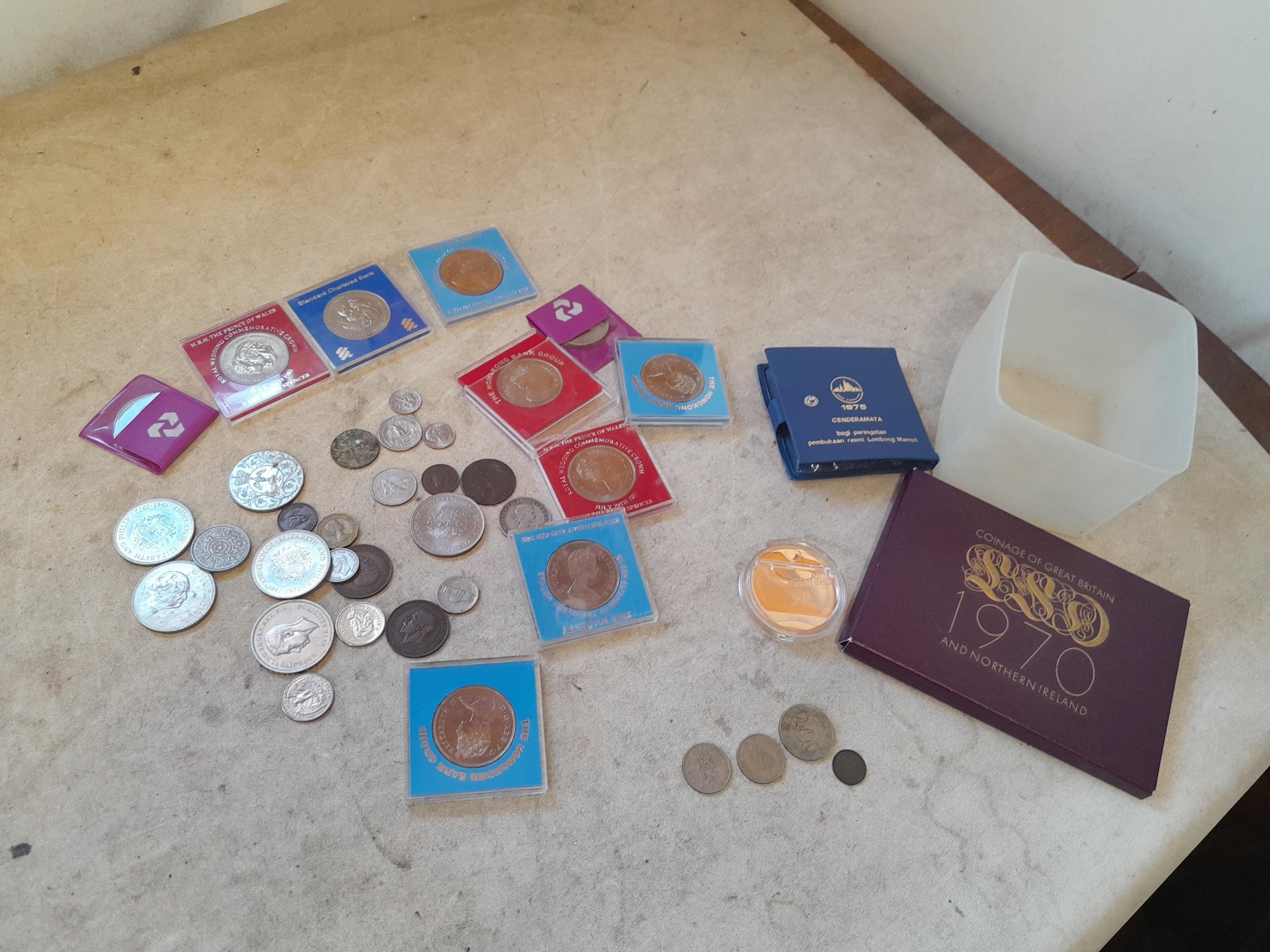 Coins : 1970 collectors set, commemorative bas metal Crowns and other coins