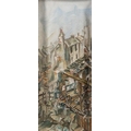 Circle of William Ralph Turner (British, 1920-2013) Industrial cityscape oil on unstretched, mounted canvas 52 x 21cm.
