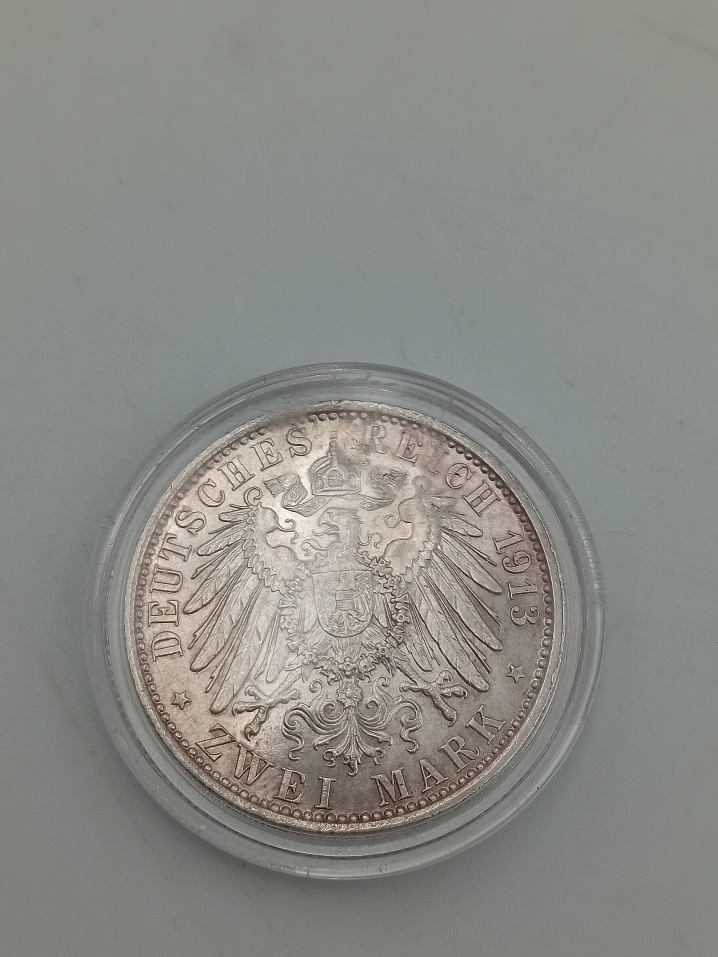 1913 A Germany Prussian silver 2 Marks. Uncirculated mint.