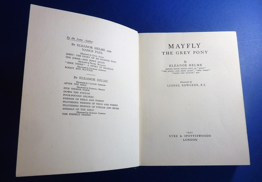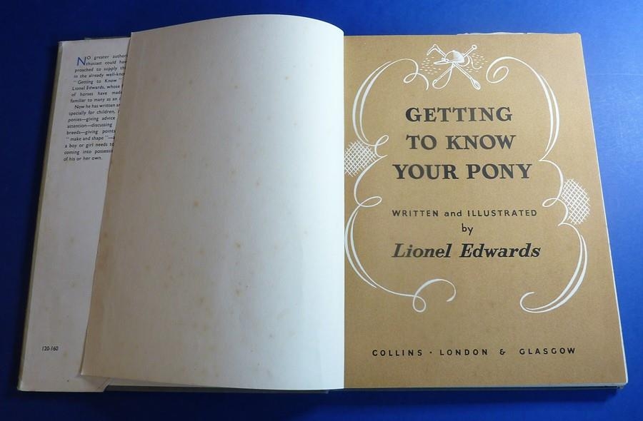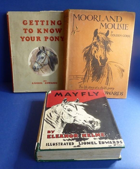 Three volumes; 'Getting to Know Your Pony' by Lionel Edwards, together with 'Moorland Mousie' (The Life Story of a Child's Pony) by Golden Gorse with plates drawn by Lionel Edwards and 'Mayfly' (The Grey Pony) by Eleanor Helme with illustrations by Lionel Edwards (3)
