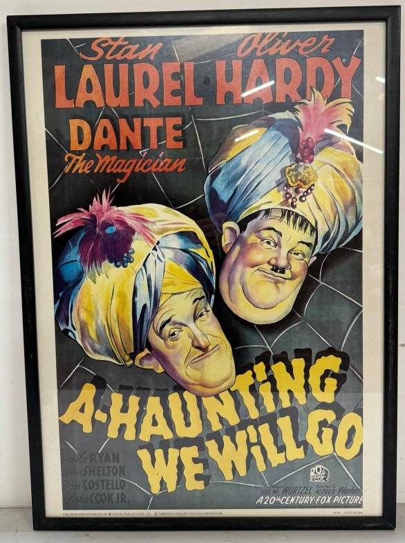A vintage framed film poster for Laurel and Hardys A Haunting We Will Go 54cm x 74cm