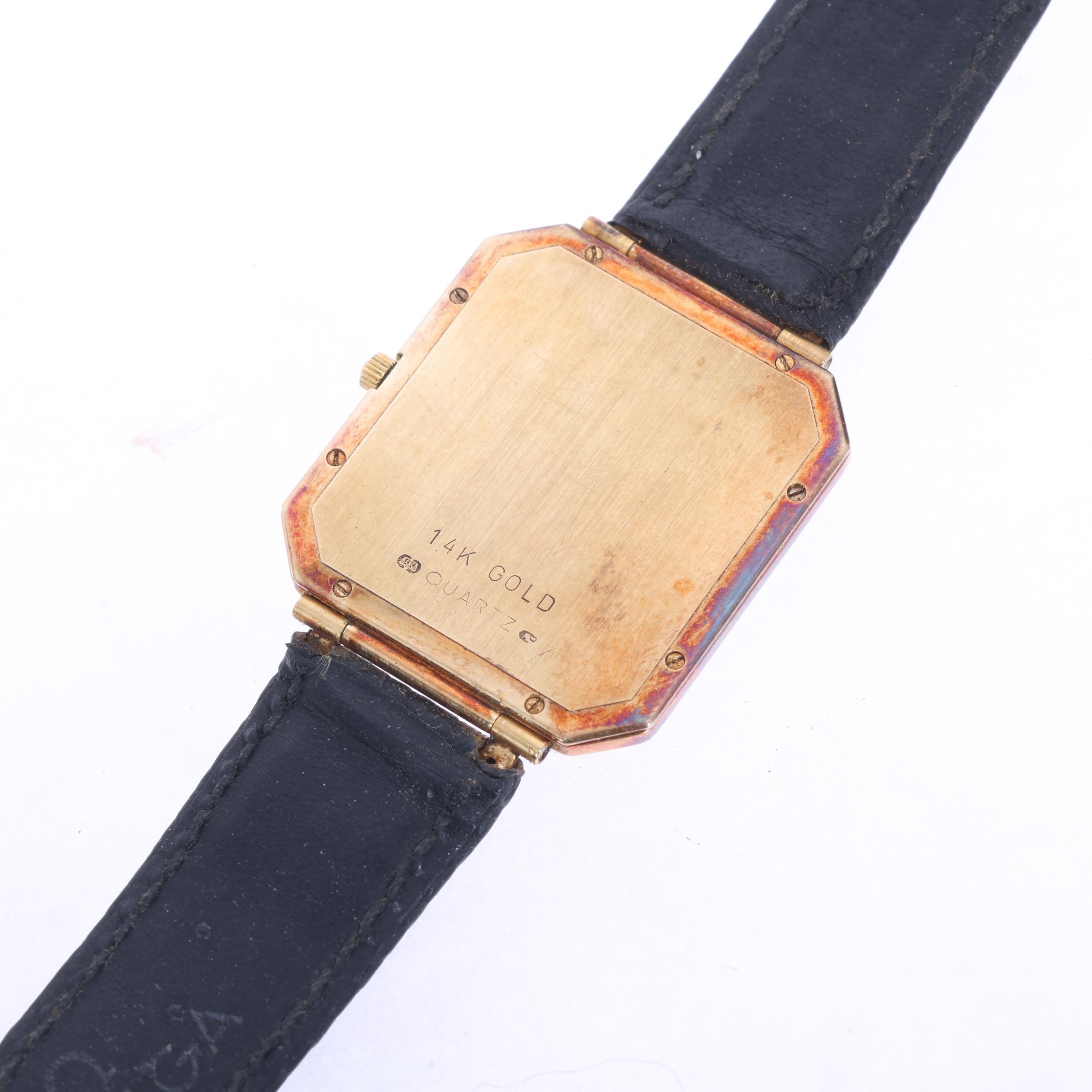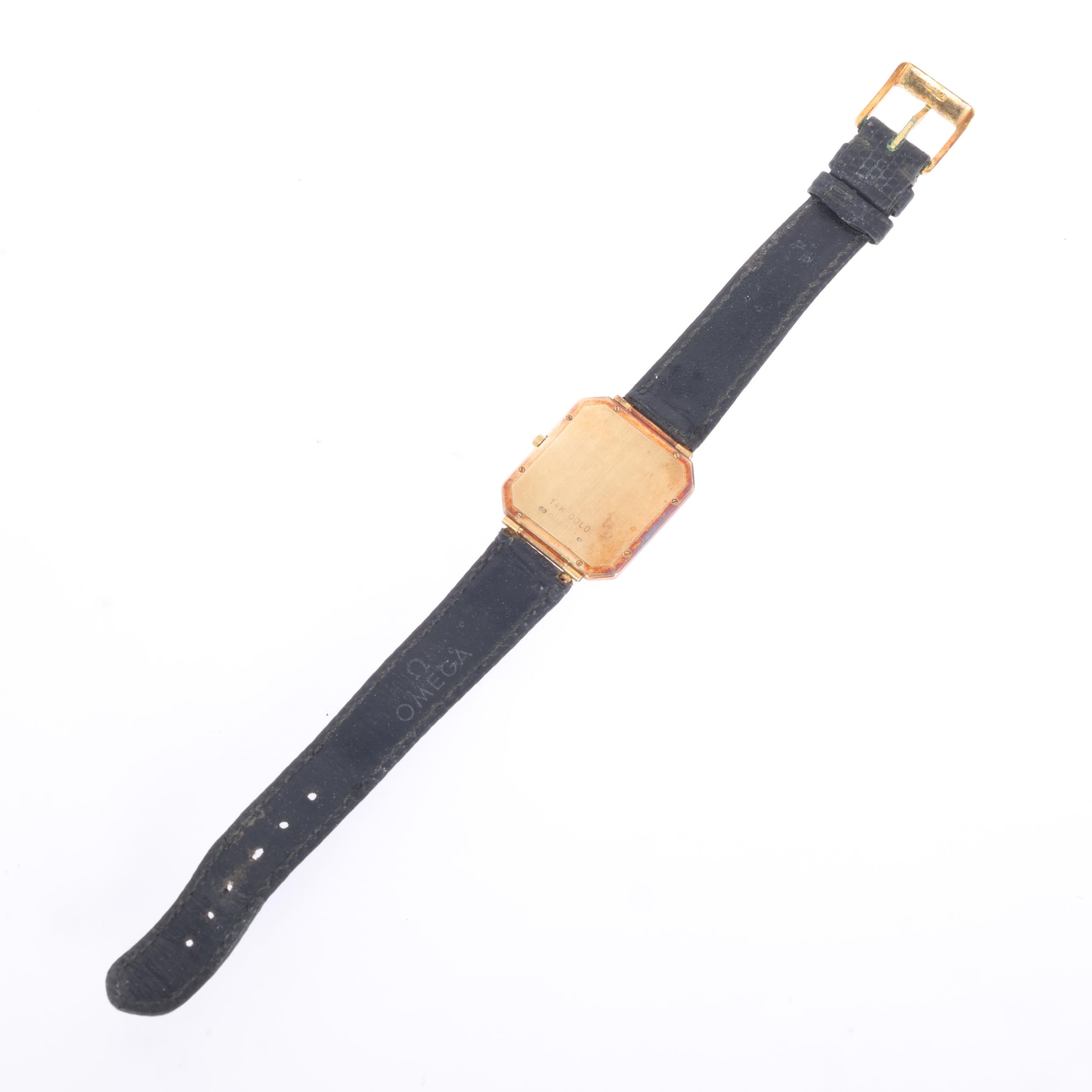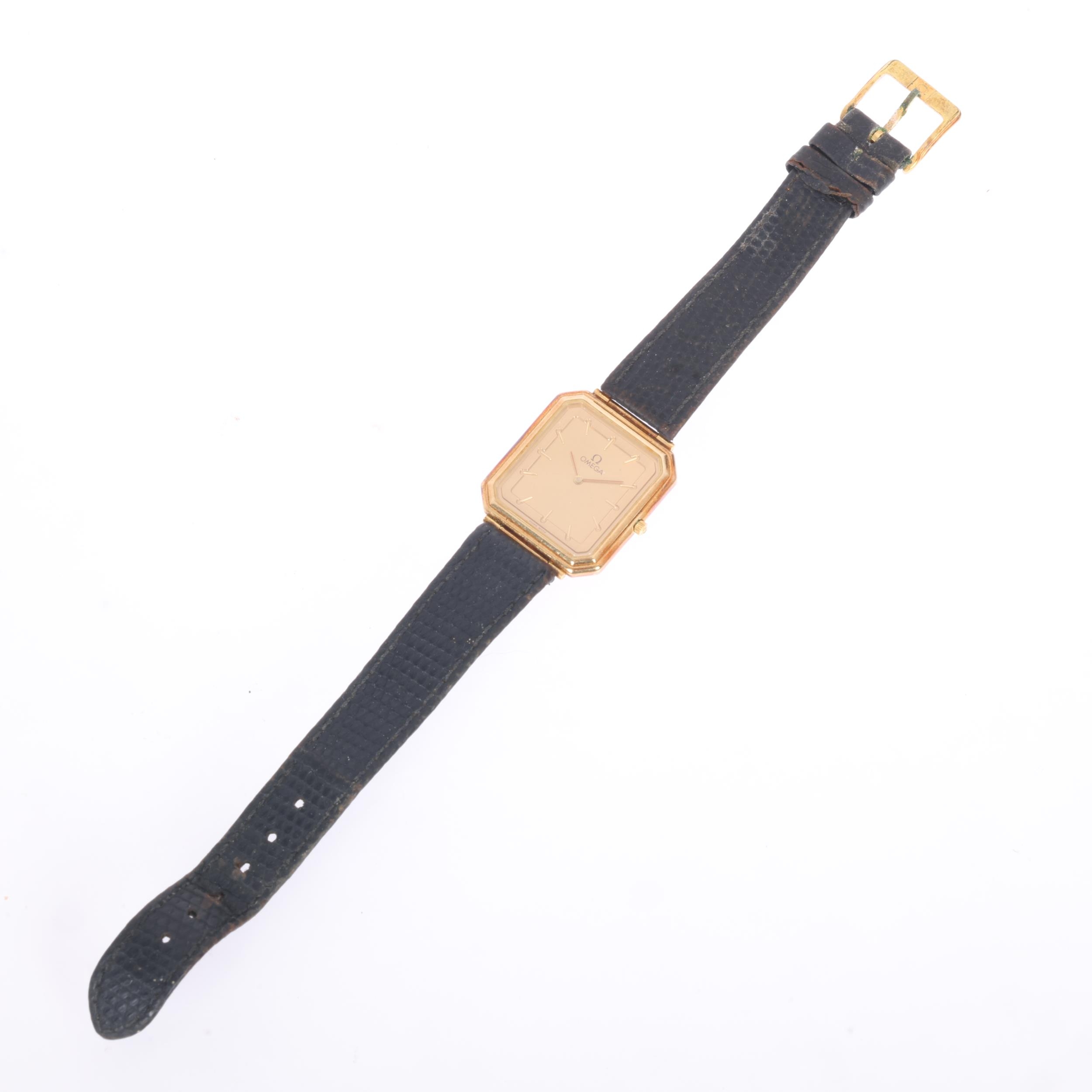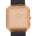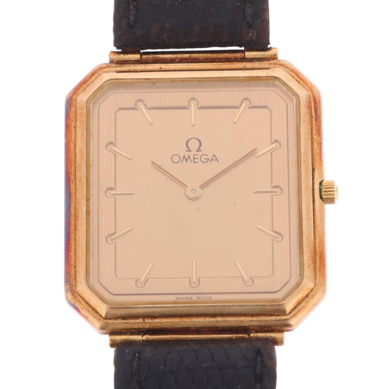 OMEGA - a Vintage 14ct gold quartz wristwatch, ref. 195.935B, circa 1982, champagne dial with gilt baton hour markers and pencil hands, 8 jewel movement with calibre 1378, serial no. 47510543, case width 27mm, 29.5g gross, not currently working