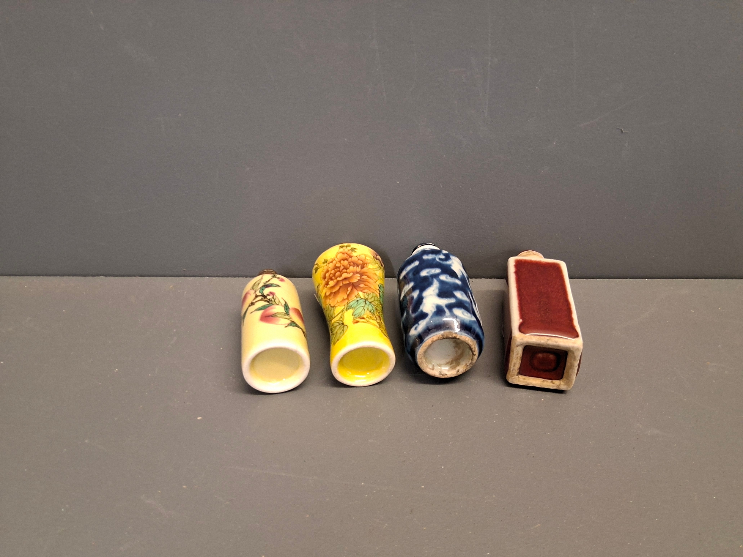 Four Chinese vintage snuff bottles in various designs
