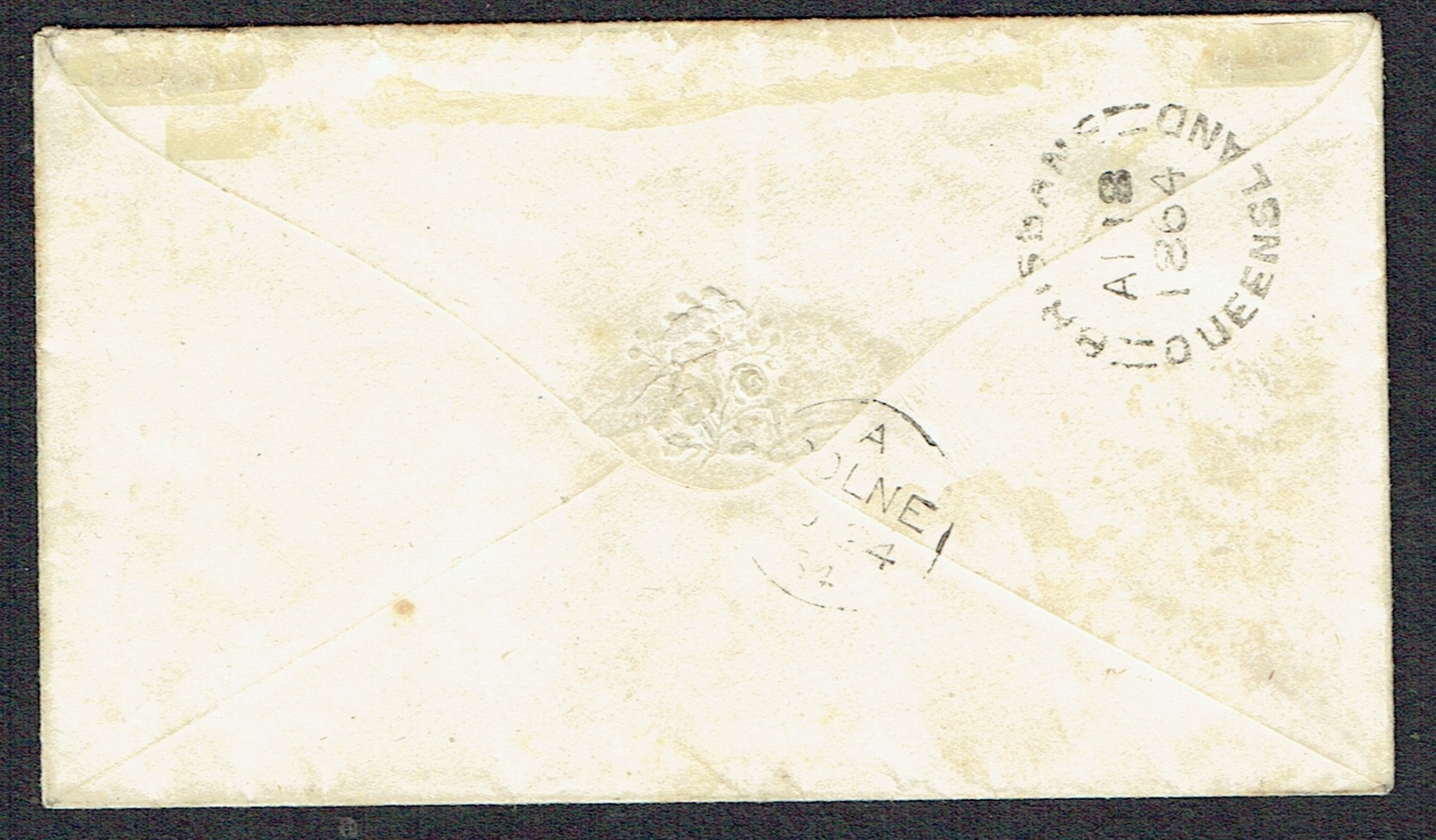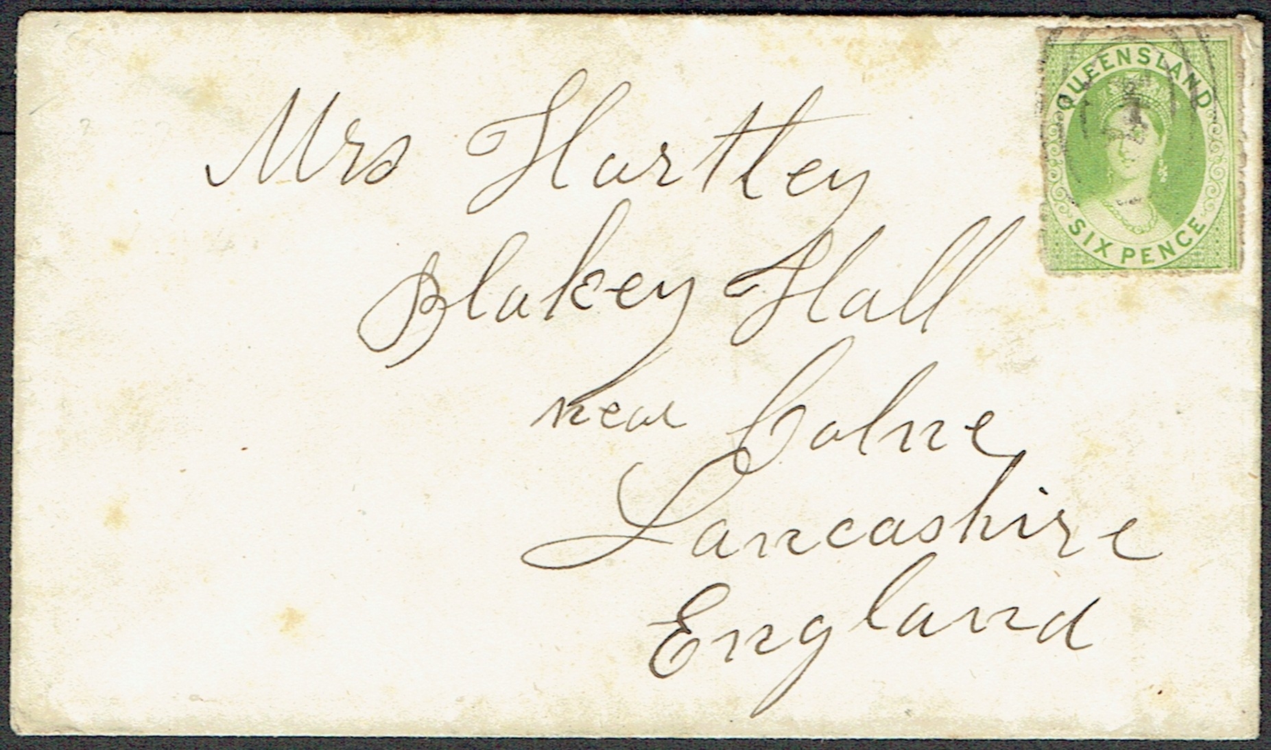 AUSTRALIAN STATES - Queensland: 1864 (Apr) Toned cover to UK bearing 6d pale yellow-green tied oval cancel sent from Brisbane.
