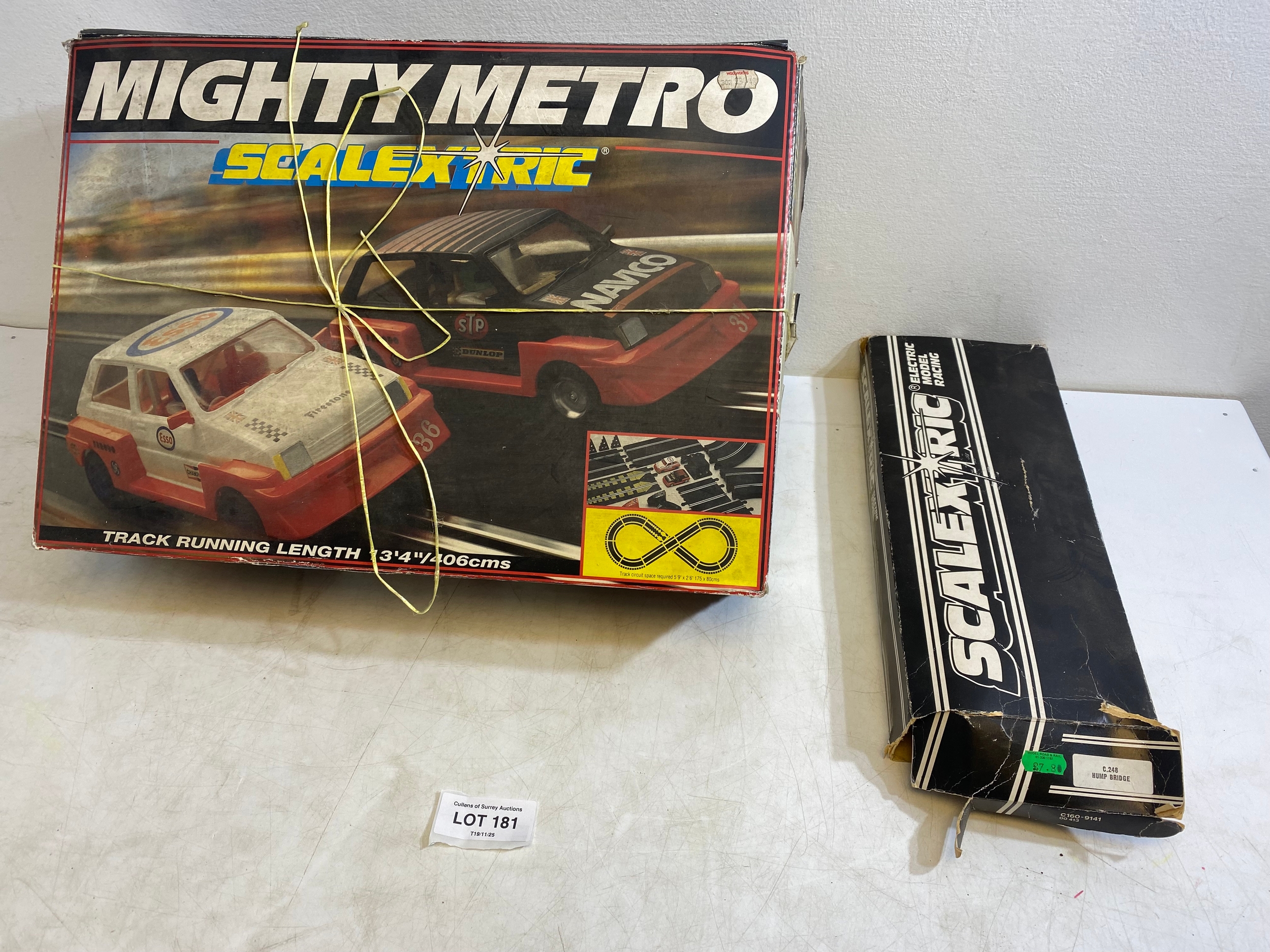 Vintage Scalextric C.580 Mighty Metro racing set and C.248 Hump bridge
