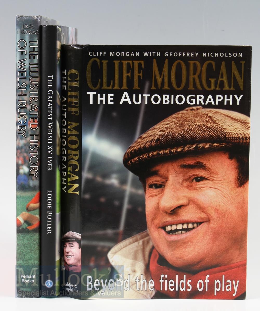 Welsh Interest Selection Rugby Books (3): Cliff Morgans Autobiography 1996; Eddie Butlers Greatest Ever Welsh XV 2011; and JBG Thomas Illustrated History of Welsh Rugby 1980. Great selection, all hardback. VG