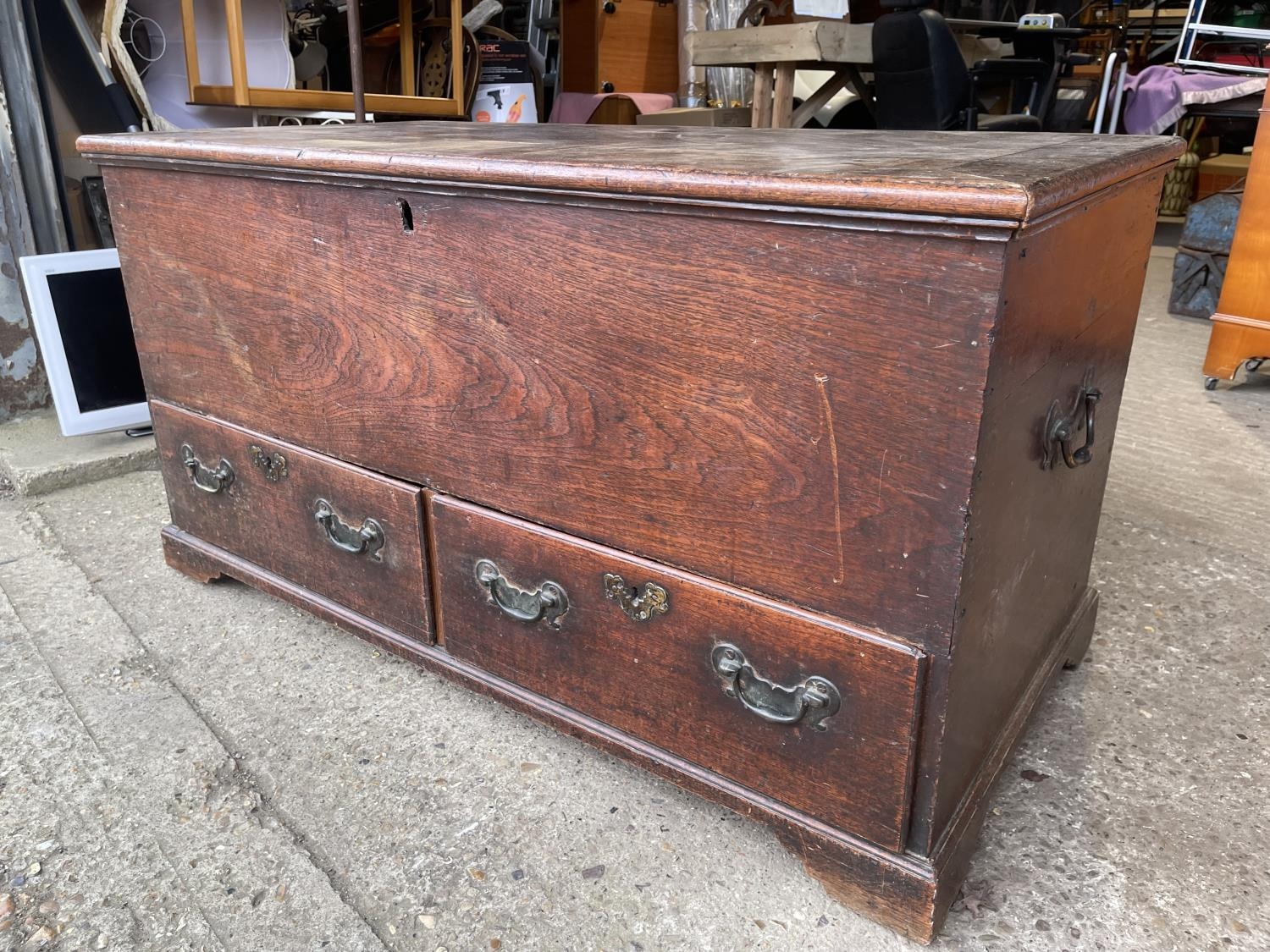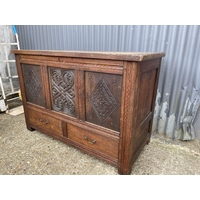 A mahogany two drawer mule chest 127x64x68