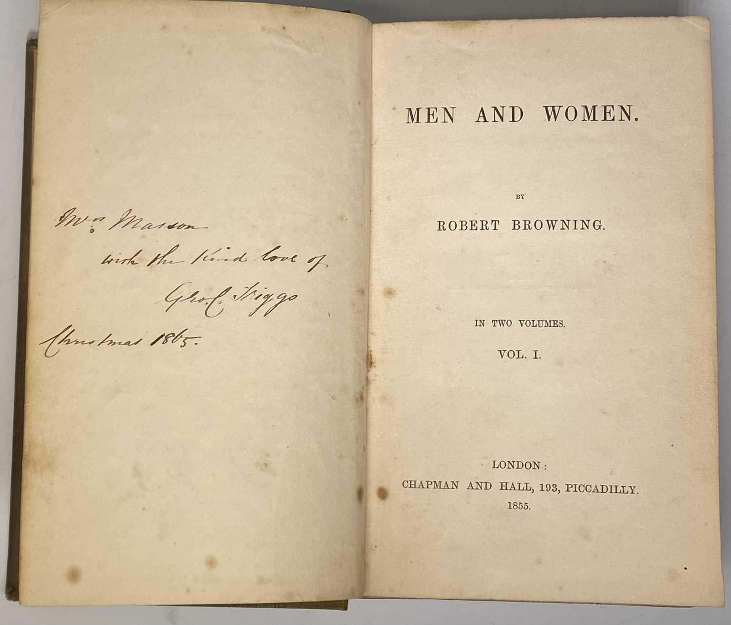 ROBERT BROWNING. 'Men and Women,' two vols, original cloth, contemporary ink inscription to endpaper, some toning and spotting to leaves, cracking to vol II joint, Chapman & Hall, 1855. (2)