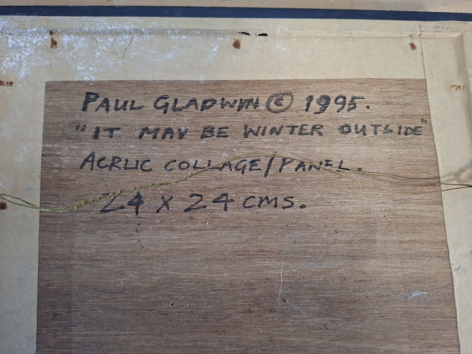 Set of 7 framed acrylic collage panels by Paul Gladwin