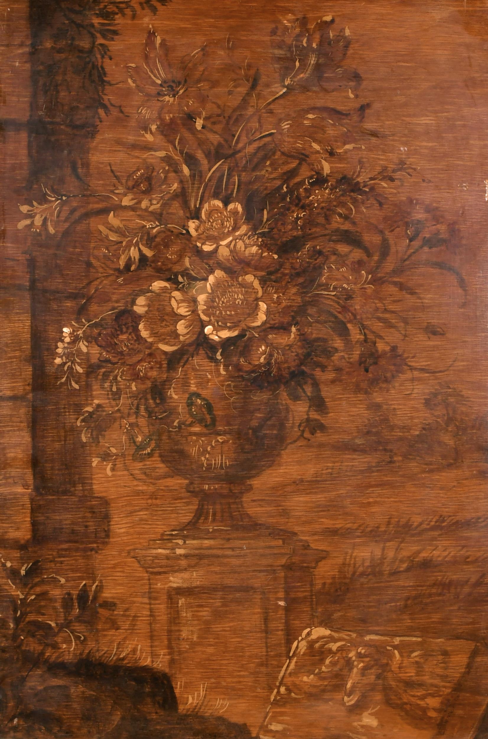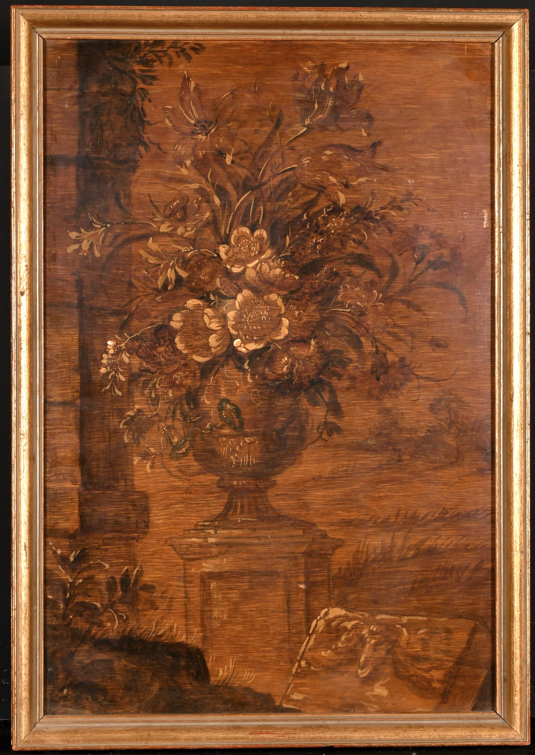 19th Century Continental School. Still Life of Flowers in a Garden Urn, Oil on Panel, Indistinctly Signed and Inscribed, 19.5" x 13" (49 x 33cm)